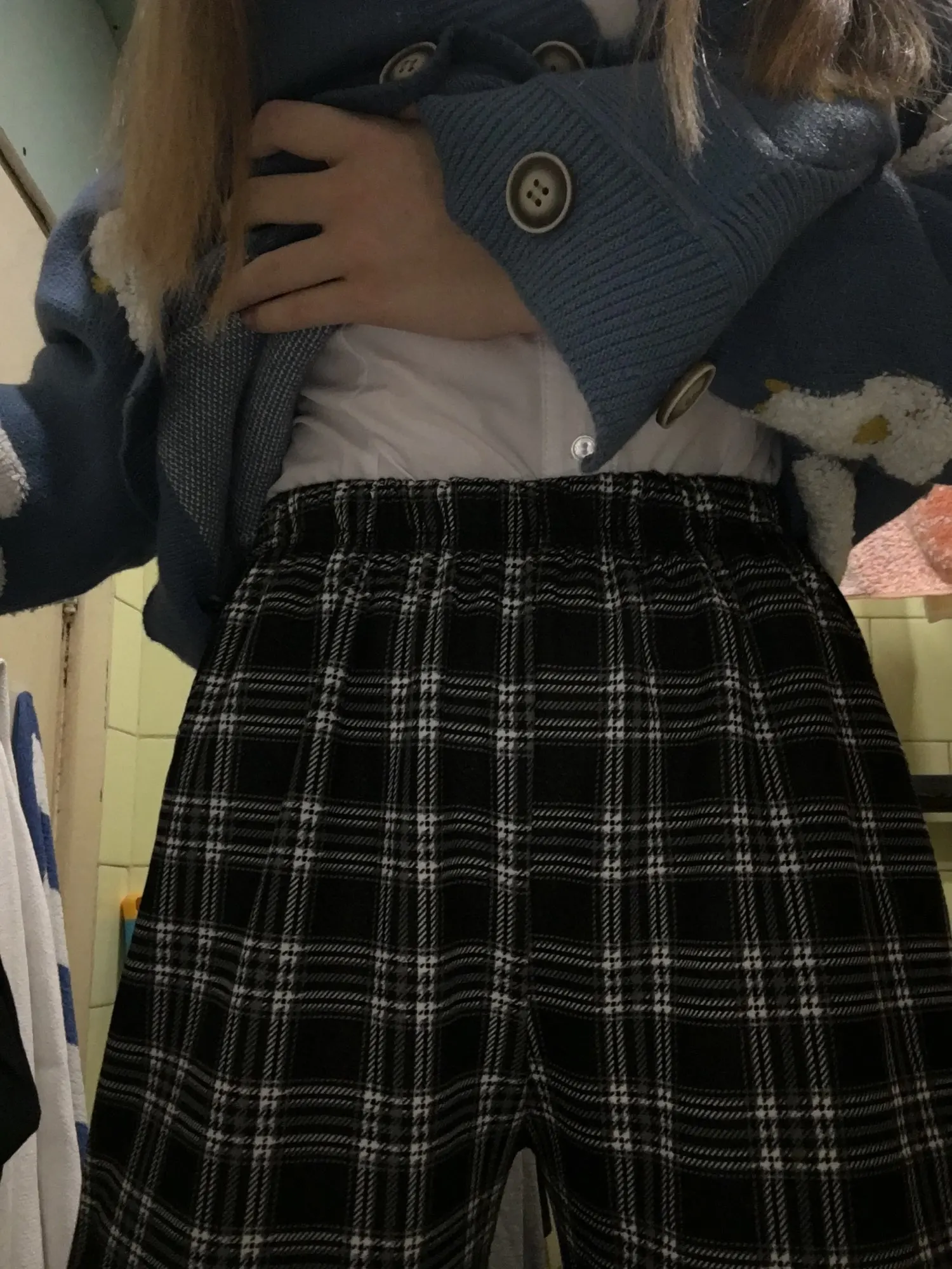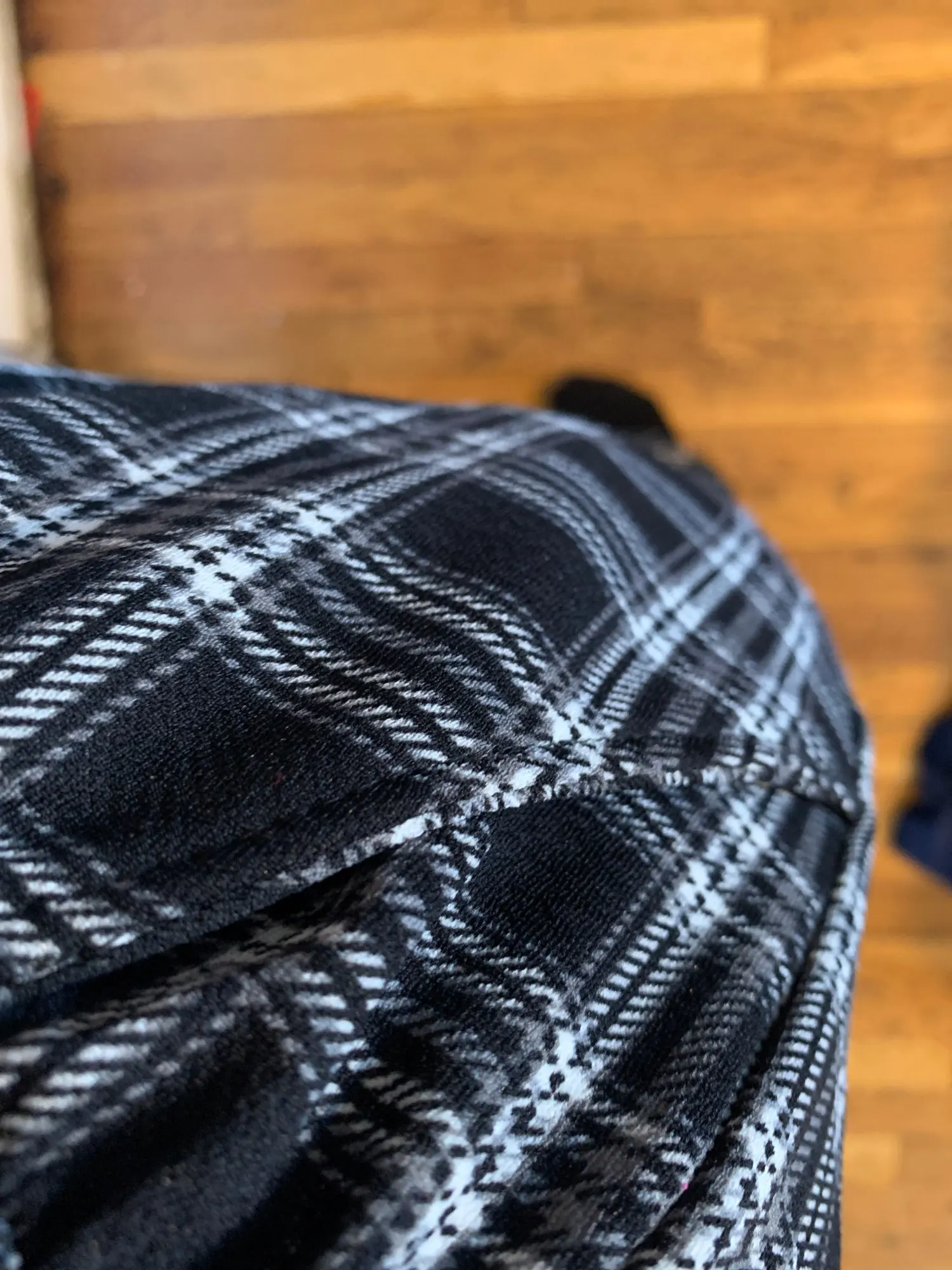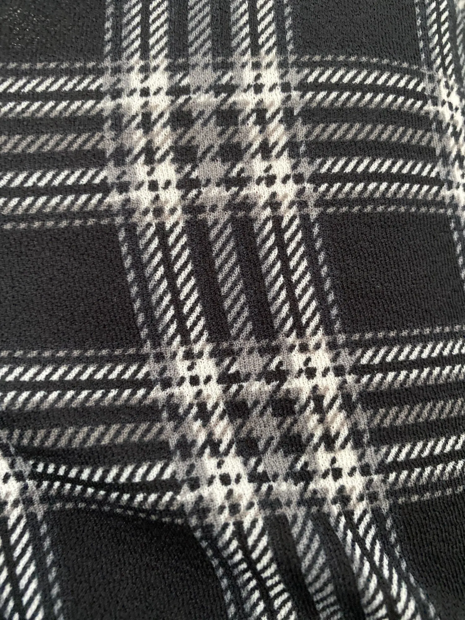 Узор в клетку-это принт. Хорошо растягивается. Тонкий, но легко носить.