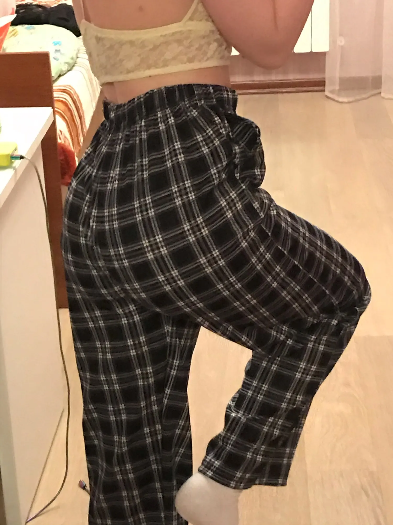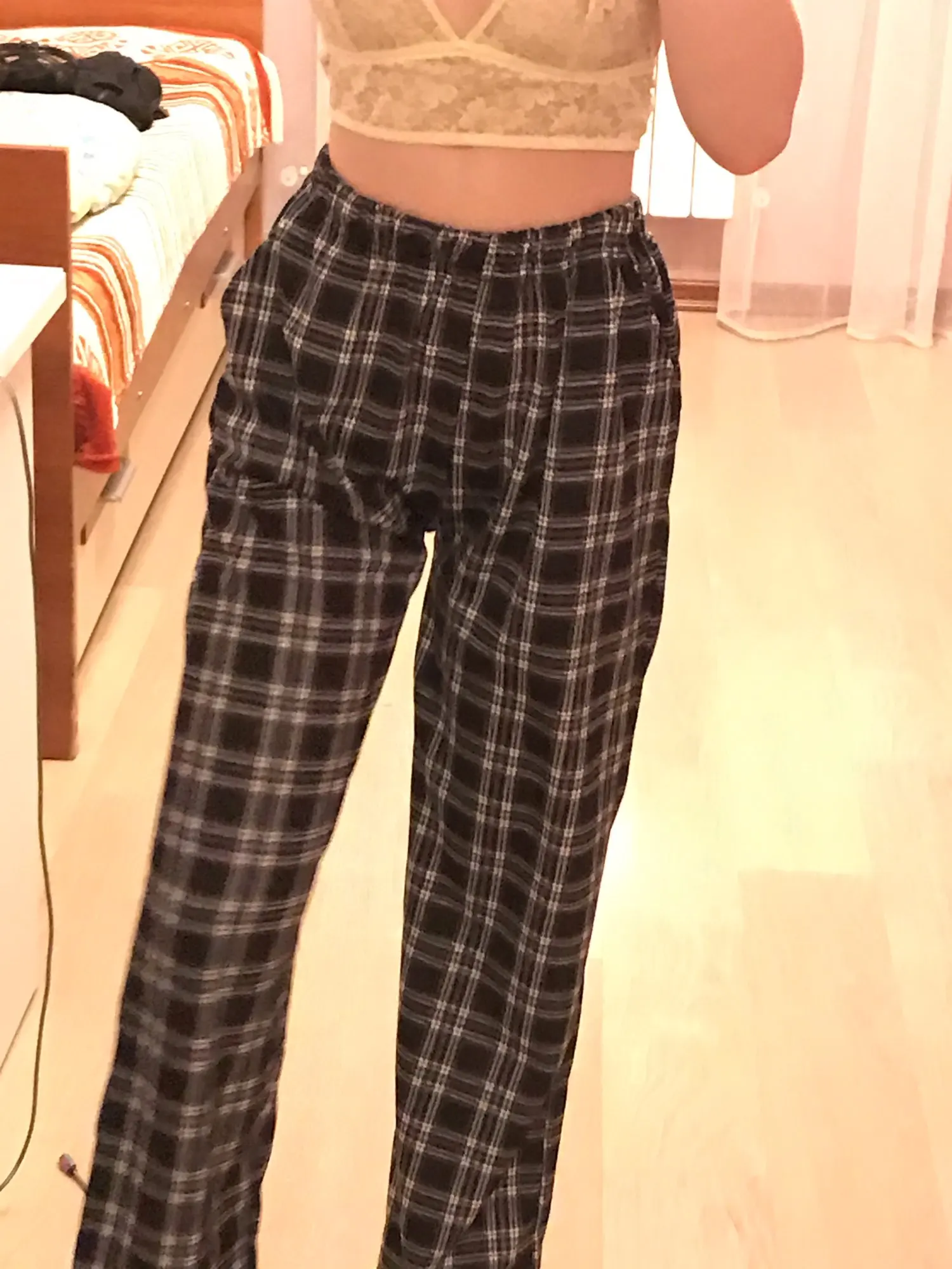 Штаны очень красивые! Если хотите чтоб штаны были оверсайз, то заказывайте на размер больше ( у меня размер М, но чтоб было оверсайз я заказала Л ). Если хотите ходить в этих штанах в холодную погоду, то советую надеть под сами штаны обычные легинсы и тд. И да, штаны очень тягучие!