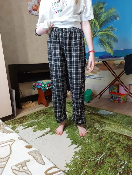 Всё отлично, заказ пришёл даже чуть-чуть раньше, соответствует описанию, ткань приятная, мягкая, эти штаны больше для летнего сезона Продавец отправил в подарок ещё не большую расчёски, спасибо большое~~