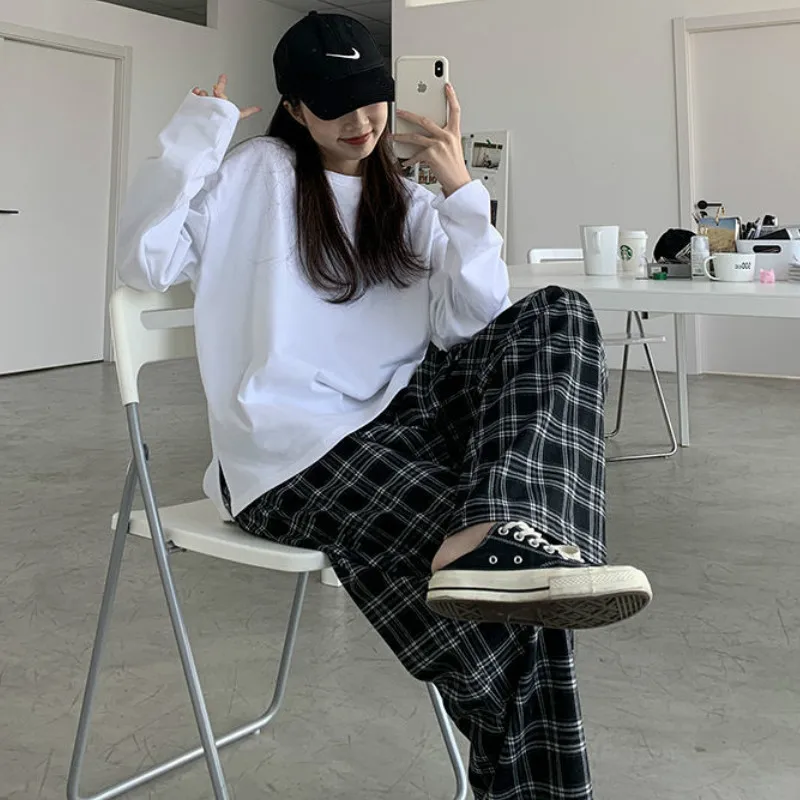 Брюки женские в клетку, с высокой талией и широкими штанинами, лето-осень, горячая Распродажа