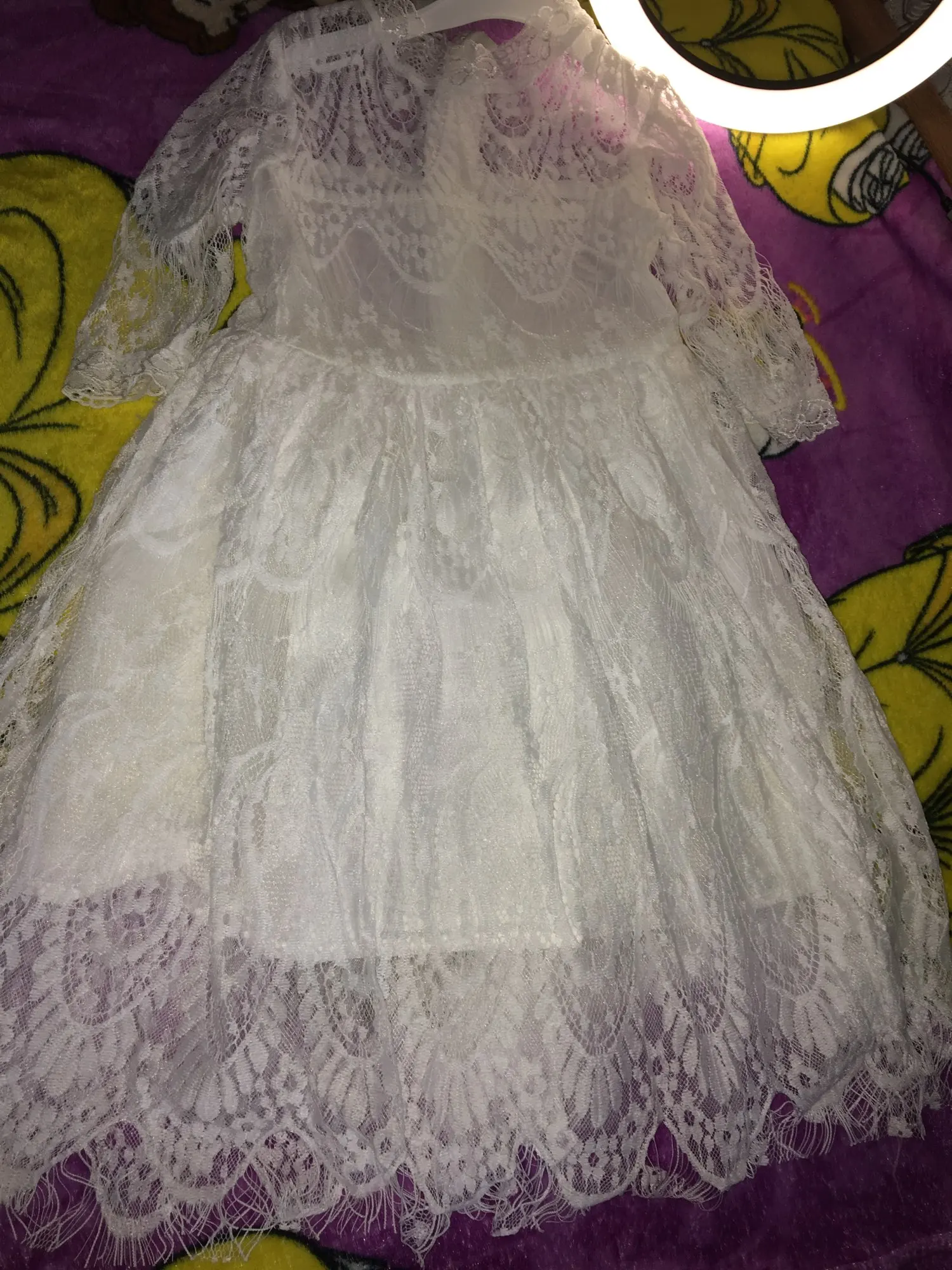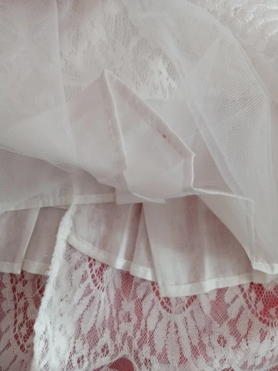 Довольно по цене. Под юбкой есть слой тюля и хлопчатобумажная подкладка. Есть провода, которые торчат, и отделка не идеальна (узоры пластины не выровнены), но, честно говоря, по цене я счастлив. Быстрая доставка. Спасибо, спасибо.