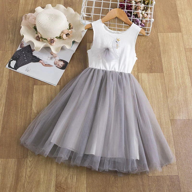 Кружевное платье для девочек, платье принцессы с цветочным рисунком, вечервечерние бальное платье без рукавов, платье с пачкой из сетки, для девочек 3-8 лет, повседневная одежда, платье
