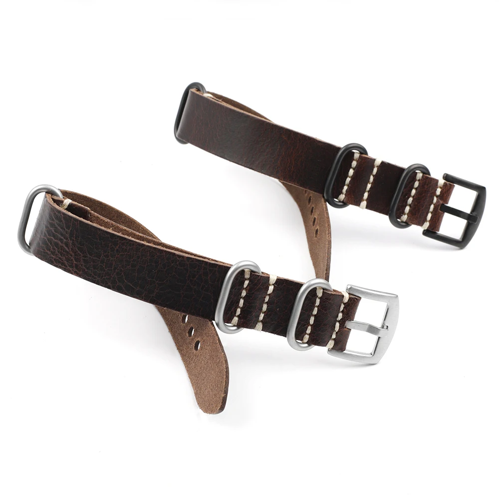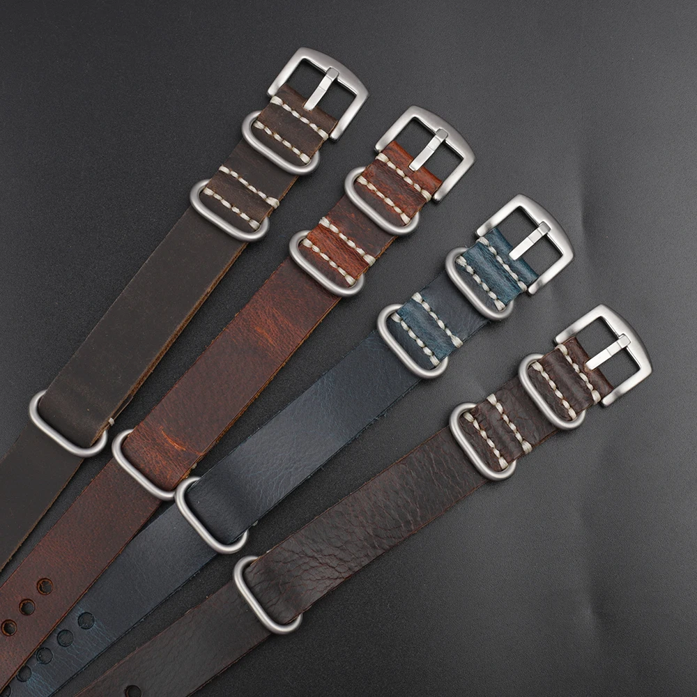 Ремешок из натуральной кожи для наручных часов, винтажный браслет Zulu для мужчин и женщин, сменные часы, 20 мм 22 мм 24 мм