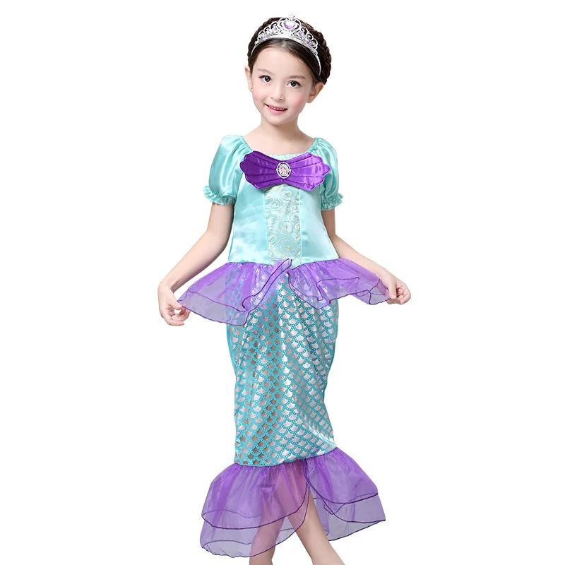 2020 модное платье для девочек, платье для косплея, фиолетовая и синяя детская одежда Русалочки для маленьких принцесс, платья для девочек