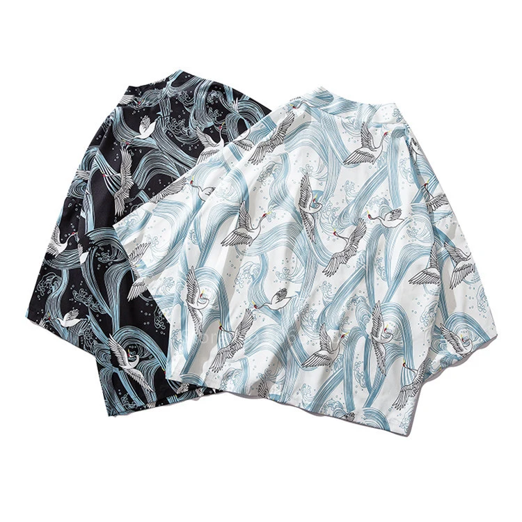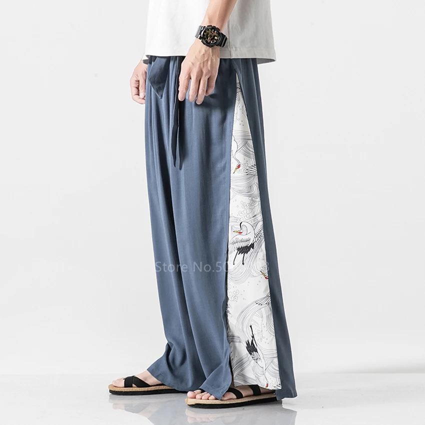 Традиционная одежда в японском стиле, кимоно с принтом журавлей, юката для мужчин, лоскутные брюки с широкими штанинами, Винтажные льняные комплекты Hanfu