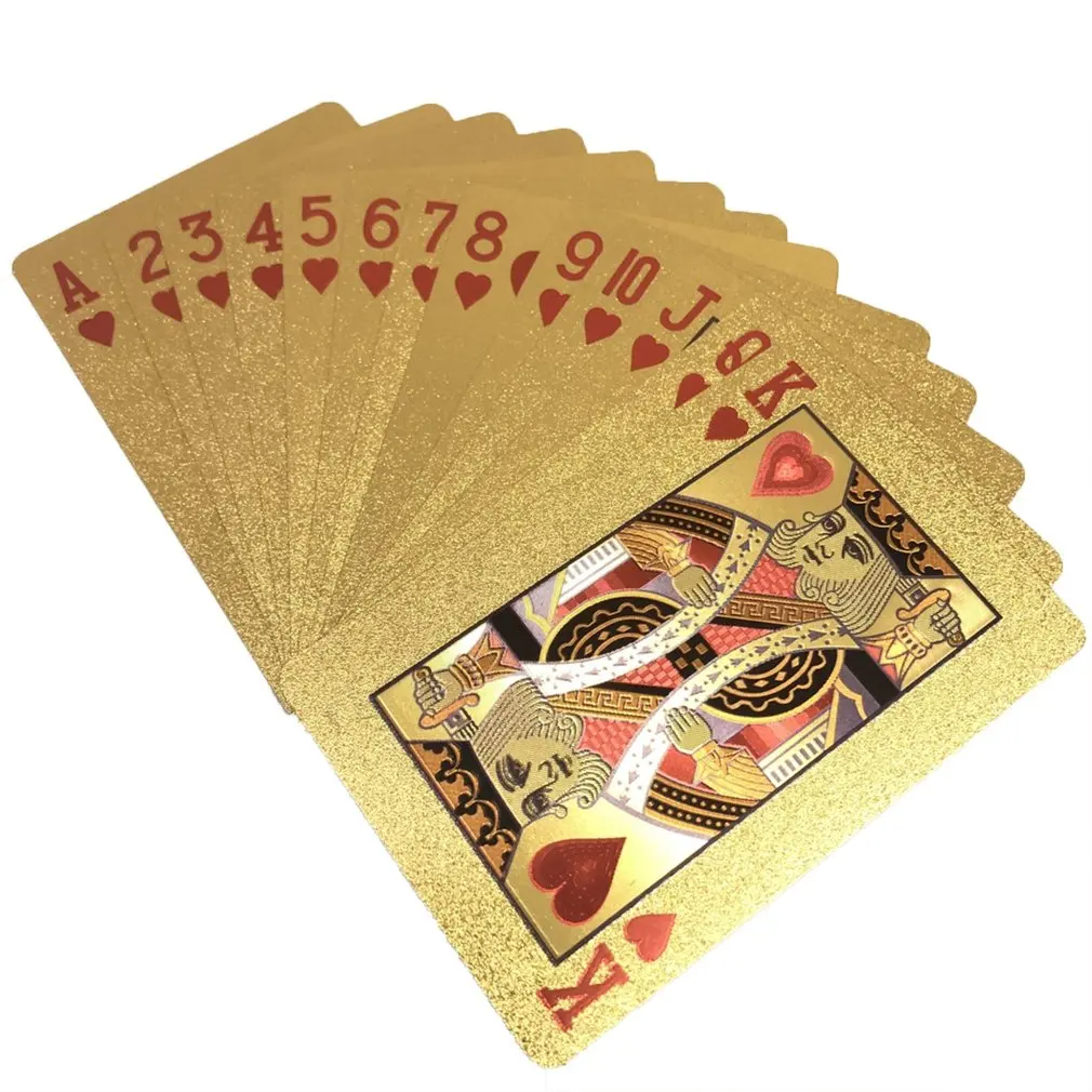 Золотые игральные карты водонепроницаемые долговечные игры в покер из золотой пластиковой фольги лучшие подарочные азартные настольные игры