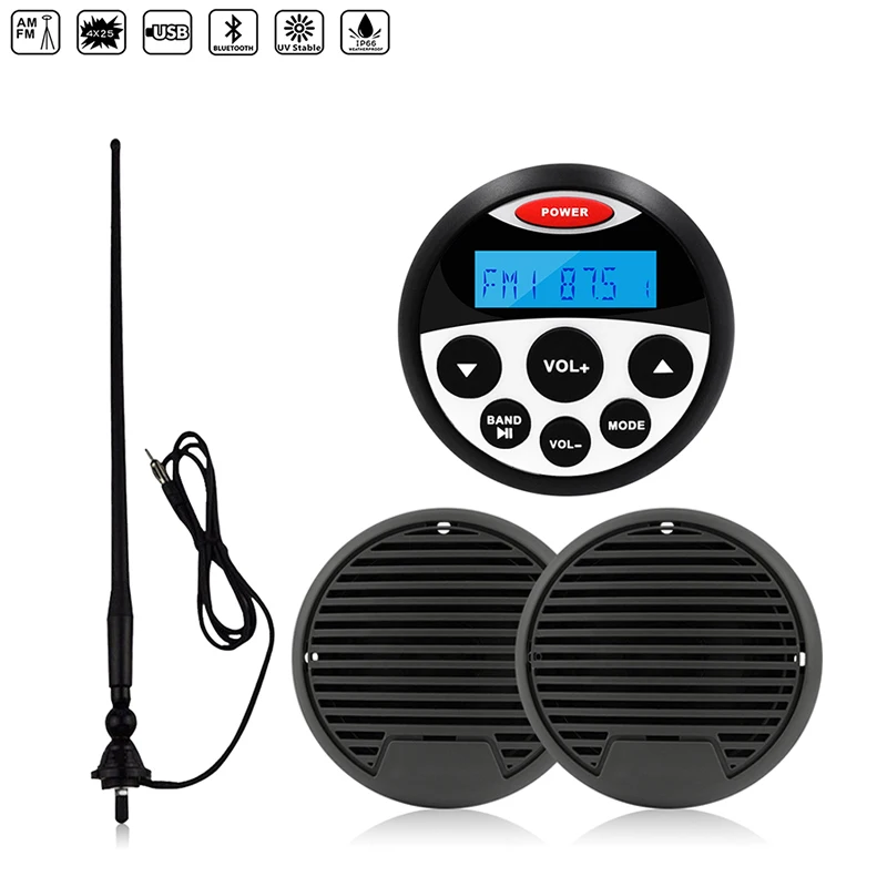 Морской Радио Bluetooth стерео аудио приемник MP3 плеер для ATV Лодка Гольф Корзина мотоцикл + 1 пара 3 дюймов Водонепроницаемый морской динамик + FM AM антенна