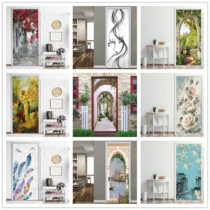 Европейский стиль ПВХ водостойкая дверная наклейка s обои для гости...