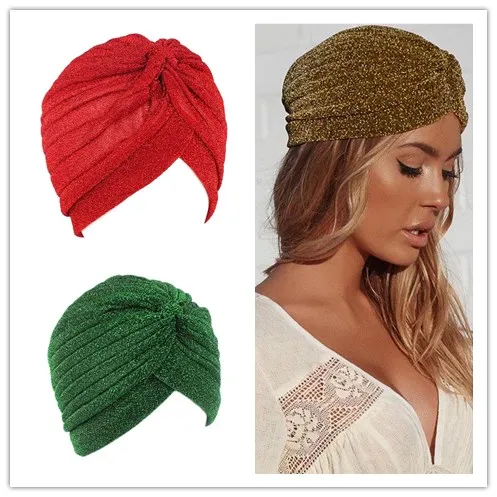 Блестящая золотая шелковая повязка на голову с перекрученным узлом тюрбан Кепка Теплый головной убор Повседневная индийская шляпа