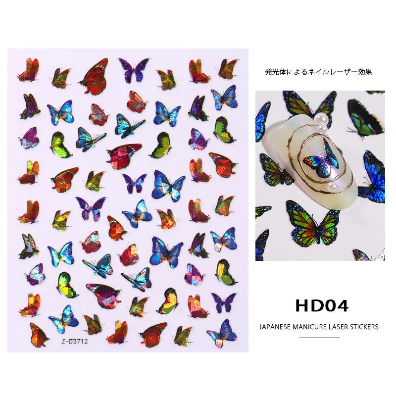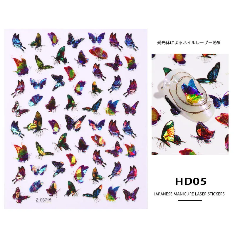 Стикеры для нейл-арта 1 лист, имитация лазера, 3D наклейки-бабочки, самоклеящиеся Стикеры в японском стиле, цветные инструменты для украшения для ногтей своими руками