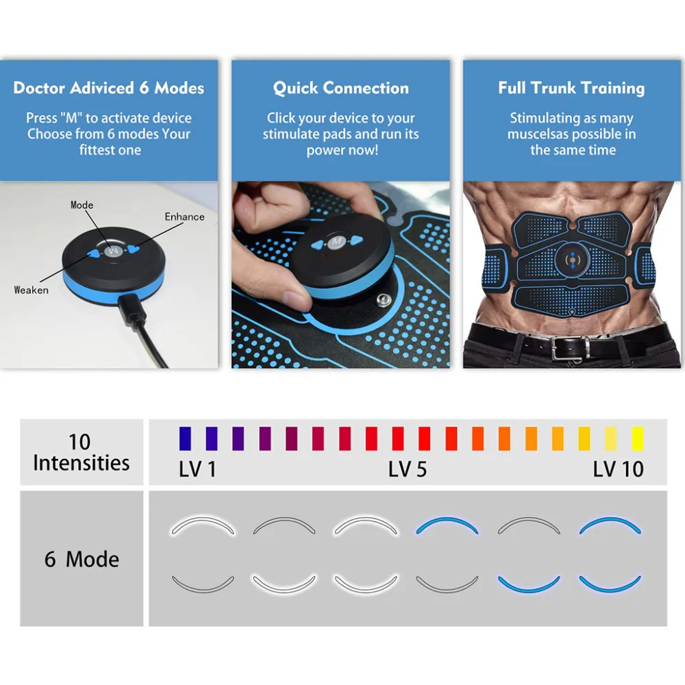 Портативный стимулятор тонера для мышц брюшной полости тренировка живота USB Перезаряжаемый 6 режимов и 10 уровней мышечная скульптура