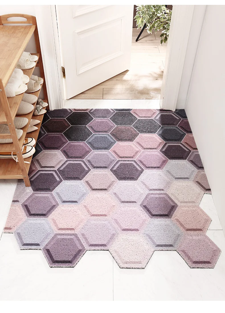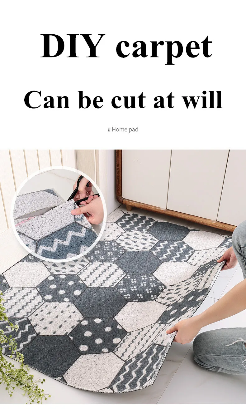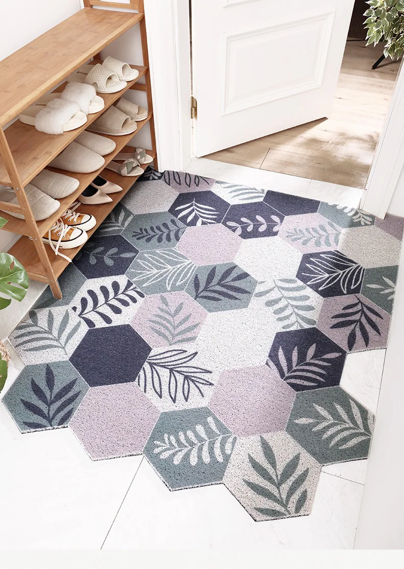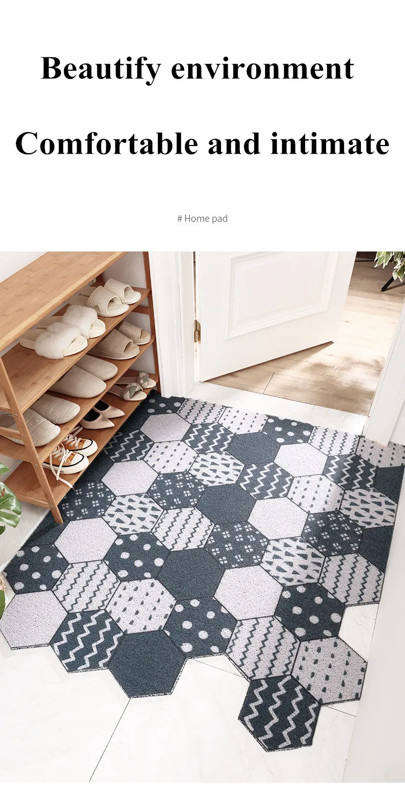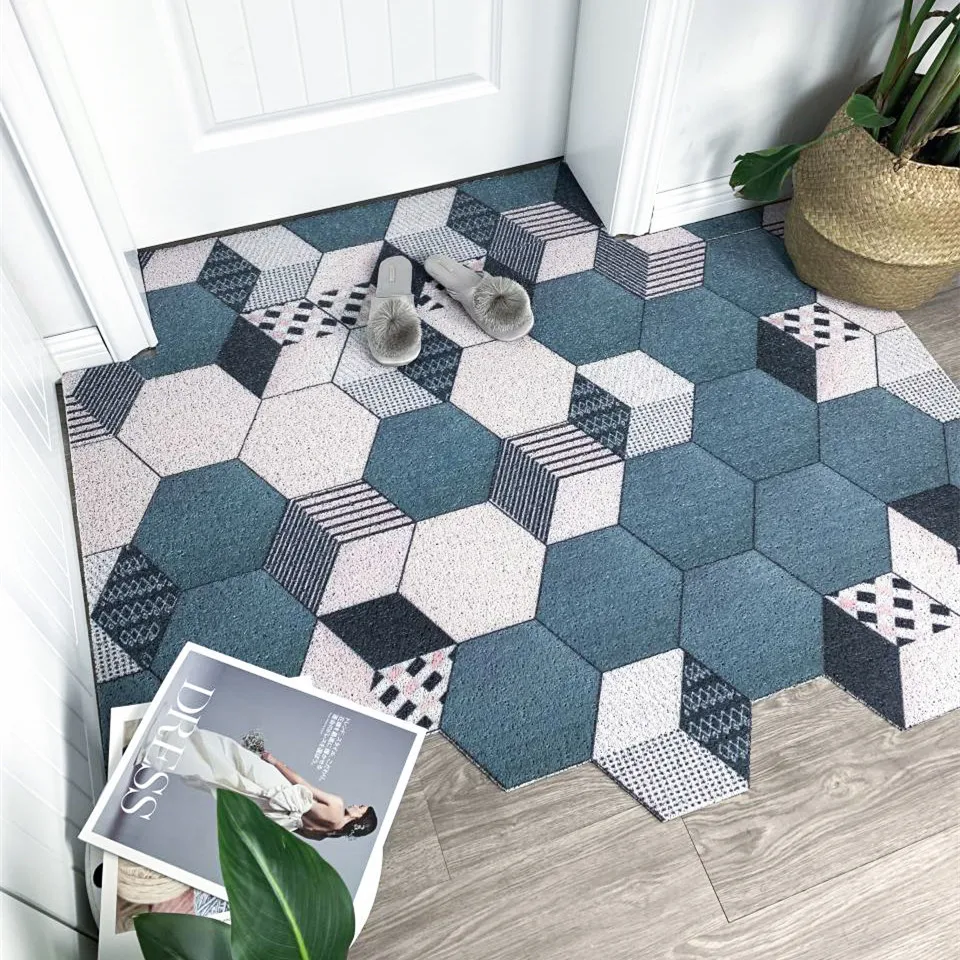 Коврик из ПВХ в скандинавском стиле с геометрическим узором и шестигранной петлей, нескользящий коврик для входной двери, гостиной, ванной