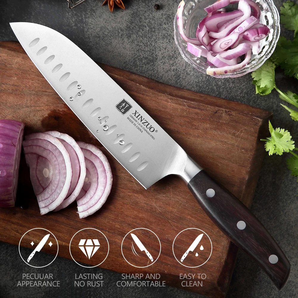 Нож Santoku из нержавеющей стали 7 '', высокое качество Din 1,4116 нарезка шеф-повара кухонные ножи красный сандаловый нож ручка повара