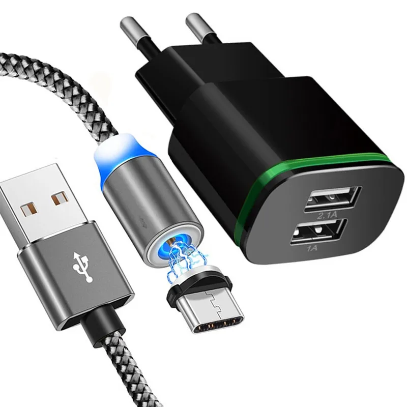 Магнитный кабель Micro USB с 2 портами для быстрой зарядки для Xiaomi Redmi 6 Pro 6a S2 3S 4 4A 5 Plus Note 9 8 pro 4X 5A Y1 Lite Y2