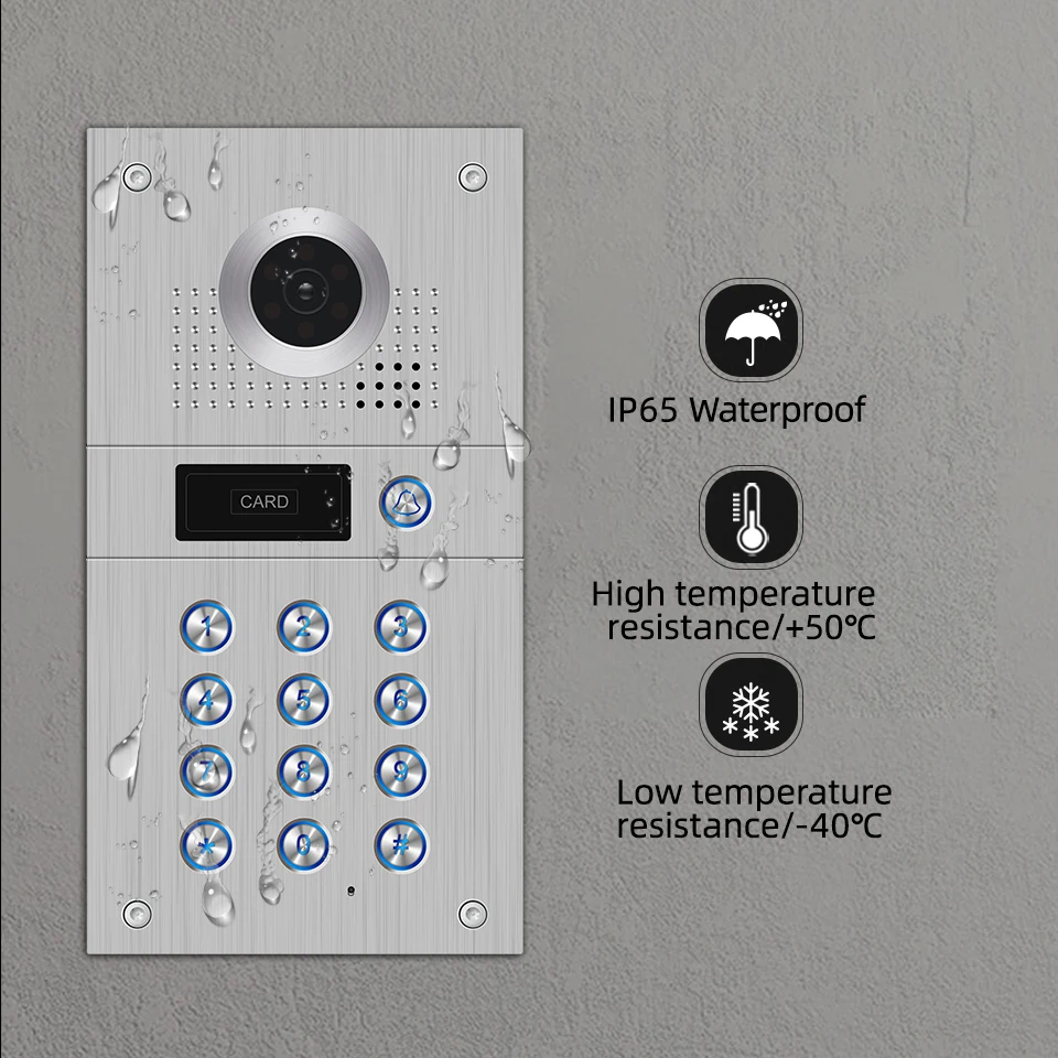 ♦Камера 1080P♦125 кГц RFID карта + код разблокировки клавиатуры♦ИК-светодиоды для ночного видения♦Регулируемый громкость внутренней связи♦Двусторонний Интерком♦ИК-датчик, Автоматическое включение/выключение ИК-светодиодов♦Простая установка и установка DIY♦Антиантивандальная панель из алюминиевого сплава♦IP65 к атмосферным воздействиям