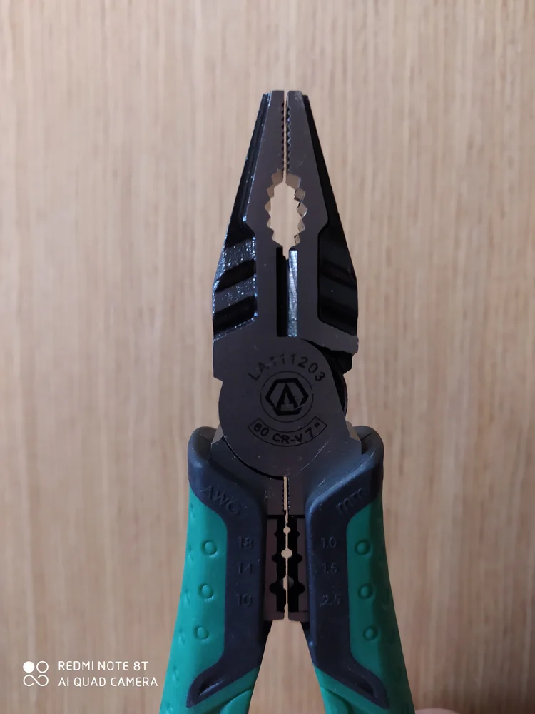 пришло быстро-в Мурманск за две недели.инструмент как на фото, с виду неплох.губки утконосов по краям со следами облоя .надеюсь очистятся.на упаковке указано-не использовать под электрическим напряжением.в подарок продавец положил загадочную силиконовую пластину-наверное,для более удобного ношения медицинской маски.