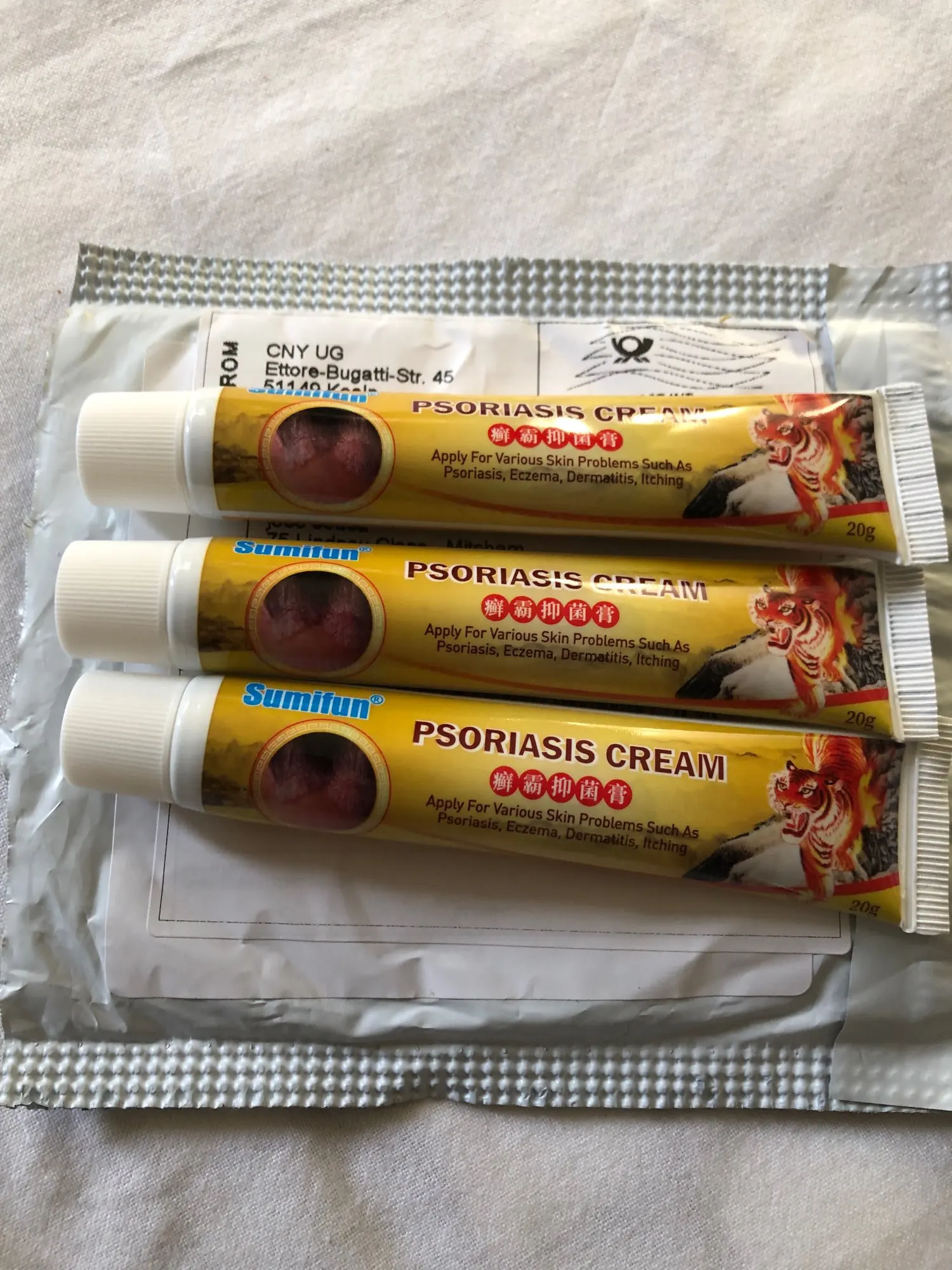 как на фото упаковка. крем снимает зуд. буду дальше использовать. пока особо результатов нет.