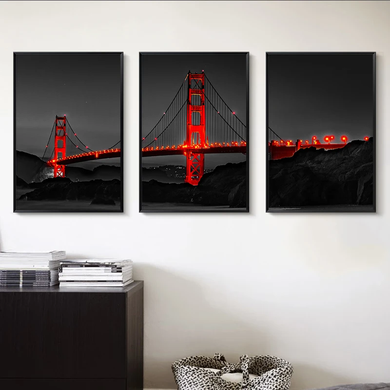 Абстрактная черная белая Картина Красная моста настенная Картина на холсте скандинавские постеры и принты настенные картины для декора гостиной