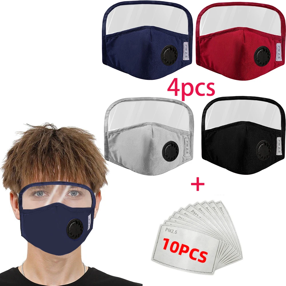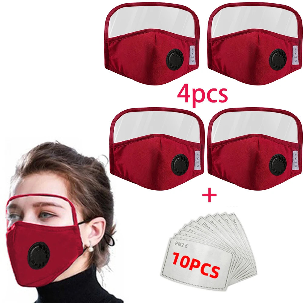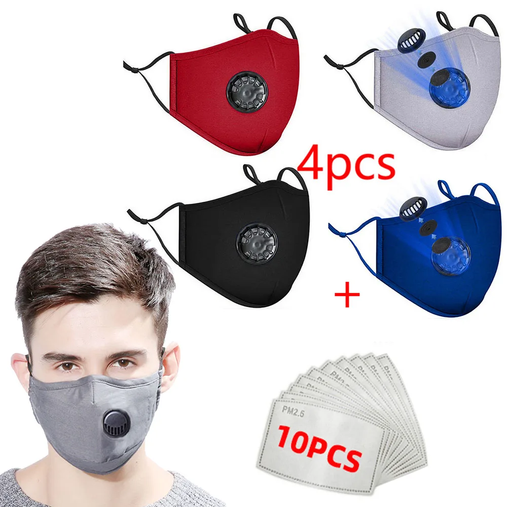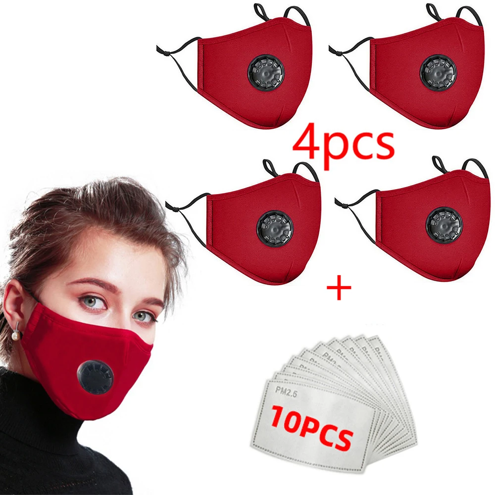 4 шт.компл. хлопок маска для лица с респиратор многоразовый клапан приемного отверстия маски с 10 шт. активированный уголь PM2.5 фильтры