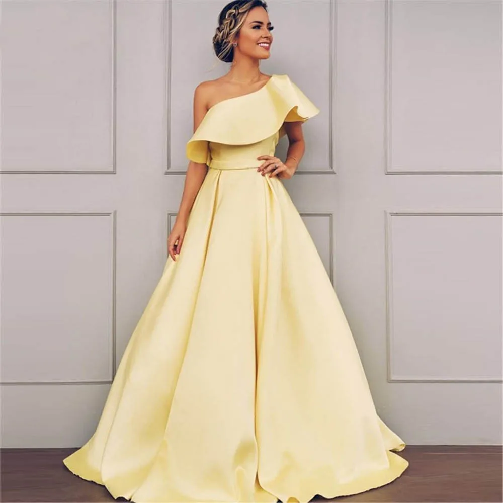 Платье женское для выпускного вечера, длинное желтое вечернее плать...