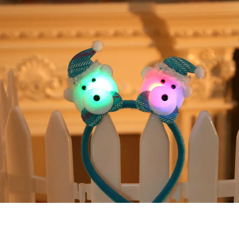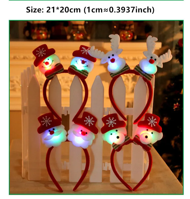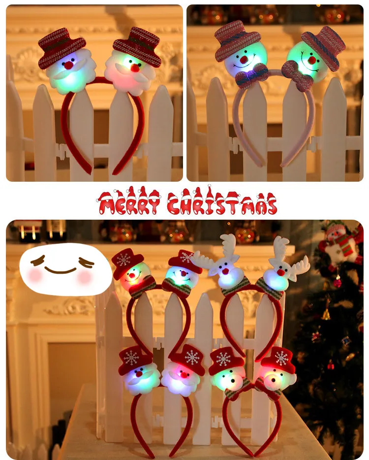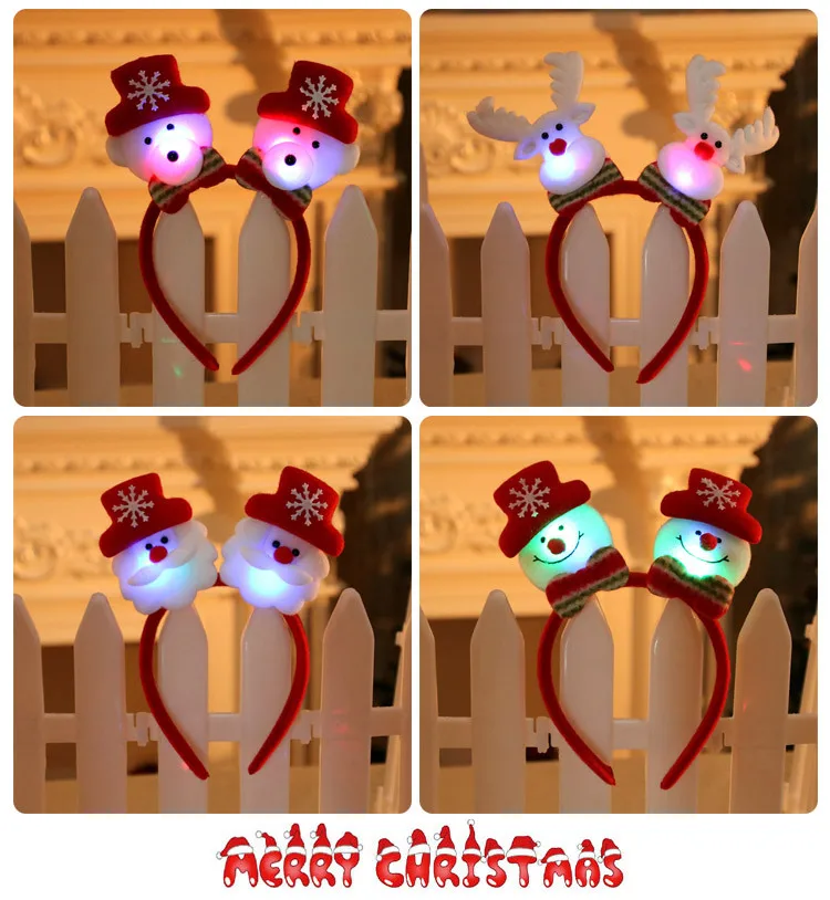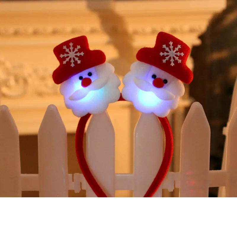1 шт. Рождественская повязка на голову с Санта-Клаусом, оленем, снеговиком, медведем, повязка для волос, светящаяся двойная головка, Рождественское украшение, красный, новый год