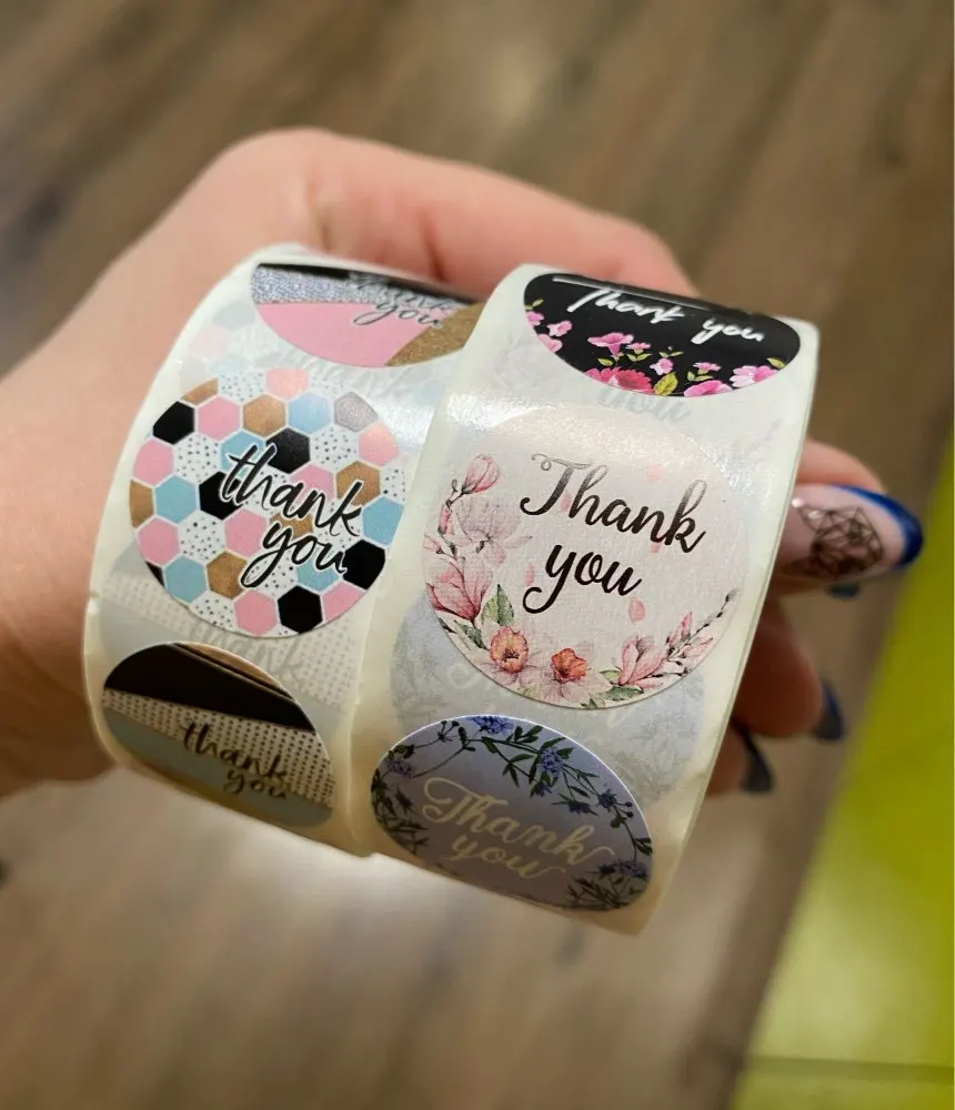 Наклейка с надписью Thank You, 500 дюйма, этикетки для печати шт.рулон, 1 дюйм, наклейка для подарочной упаковки, предложение на день рождения, Наклейка Стикер для канцелярских товаров