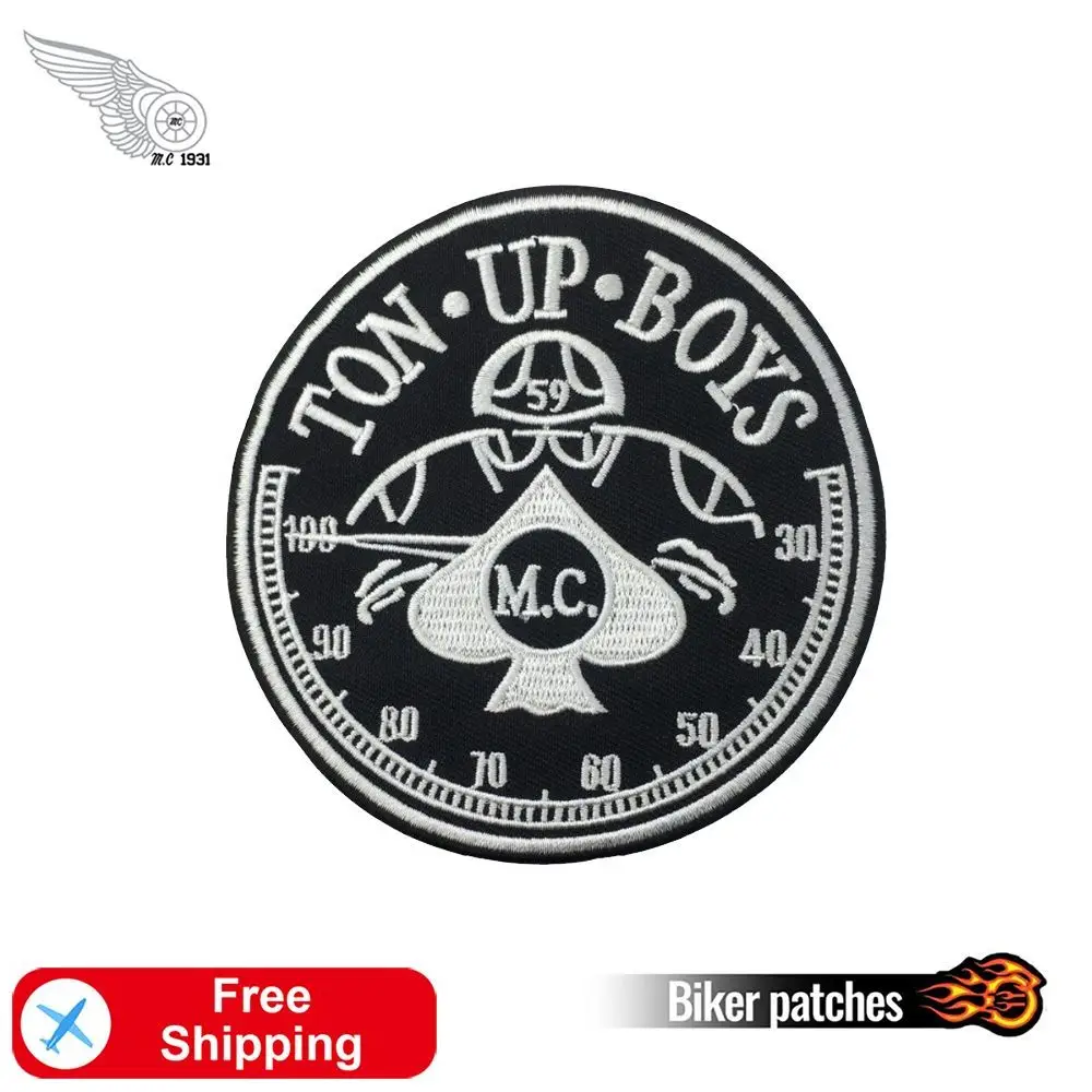 Нашивки с вышивкой Ton up Boys MC, Значки для одежды, жилет, передняя часть груди, мотоциклетные нашивки в полоску, сделай сам, аппликация для мотоцикла