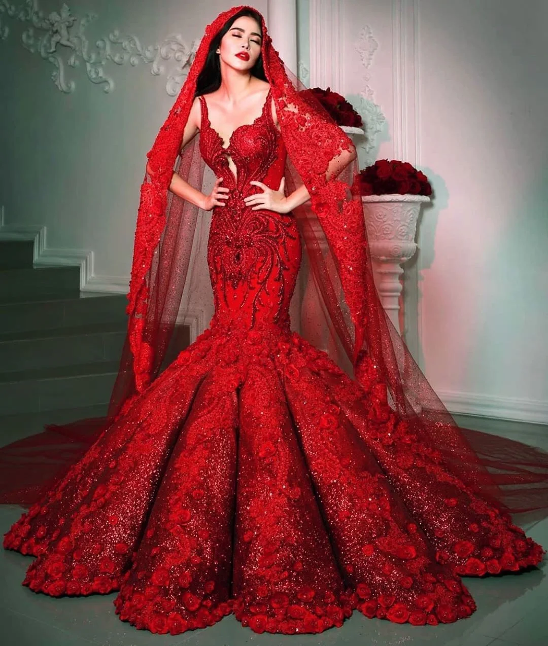 Красные платья невесты Ближнего Востока, цветочное строгое платье с...