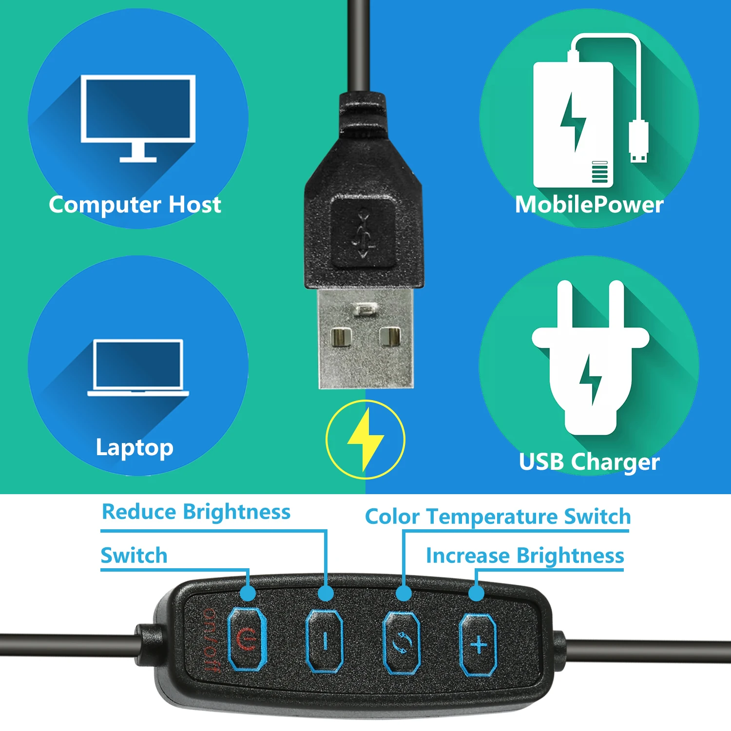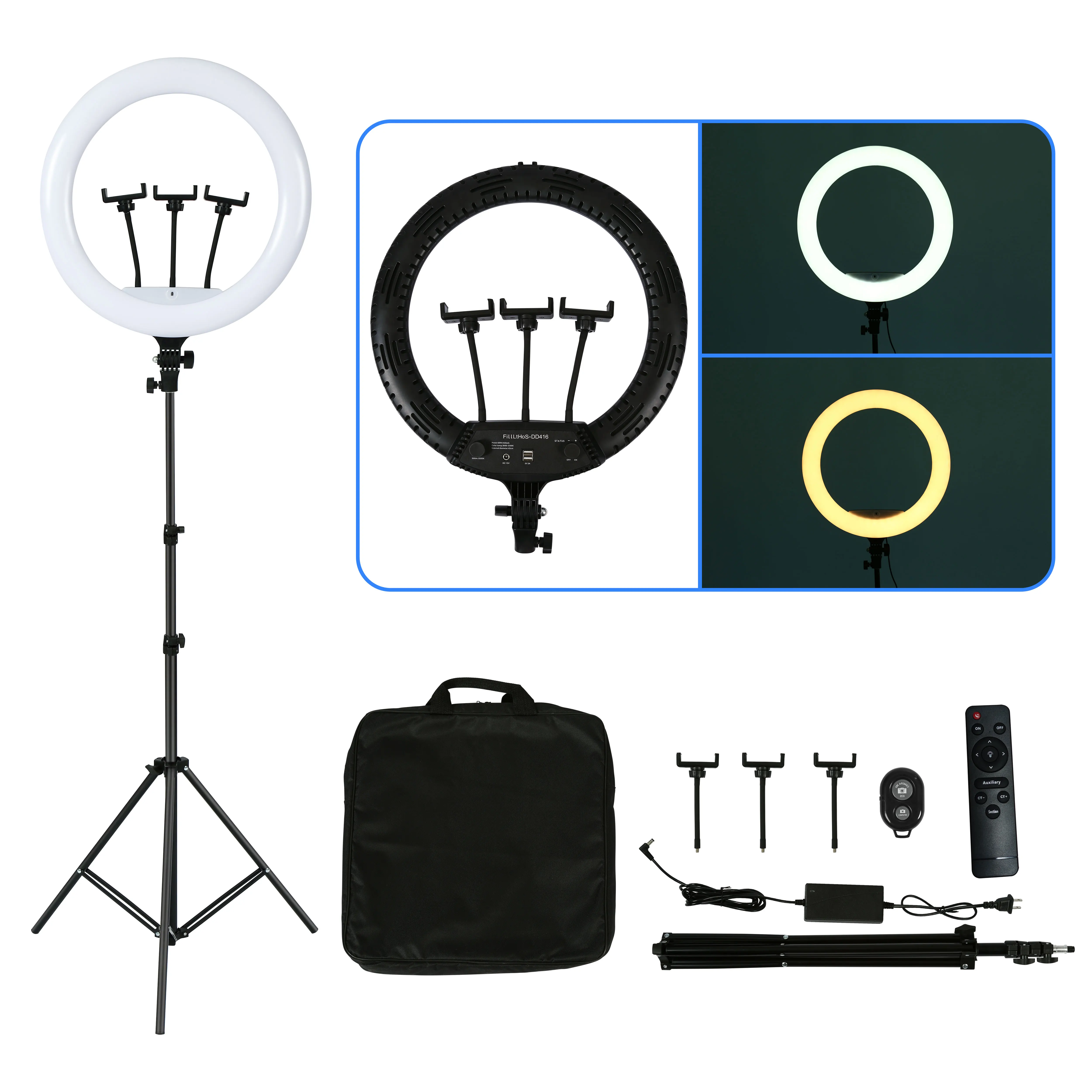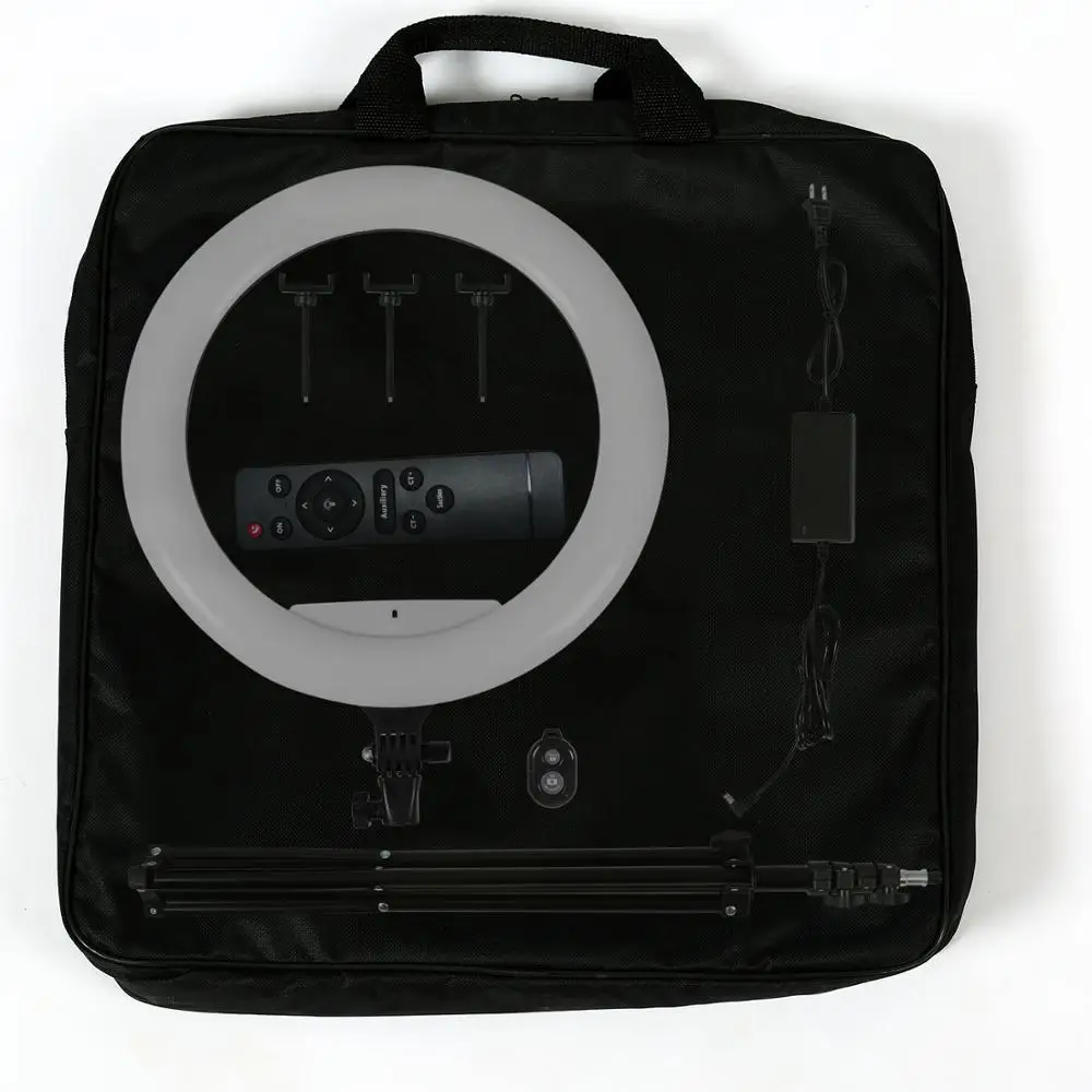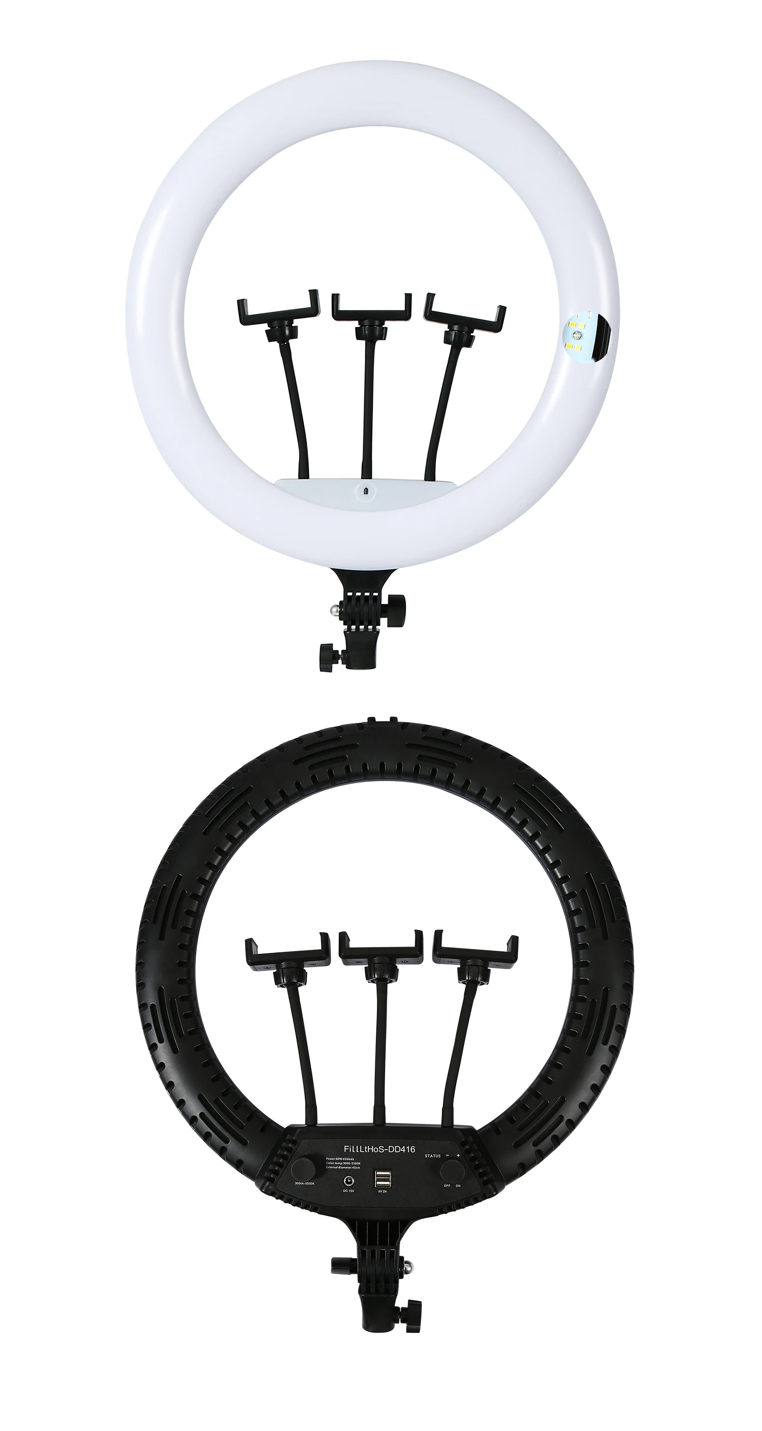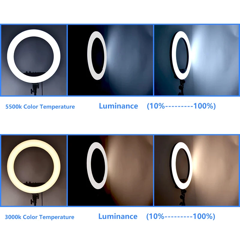 Кольцевой светильник для селфи, 18 дюймов, светодиодный подставкой, светодиодная кольцевая лампа для видеозаписи, видеоблогов, кольцевая лампа с 3 держателями для телефона, разъем питания