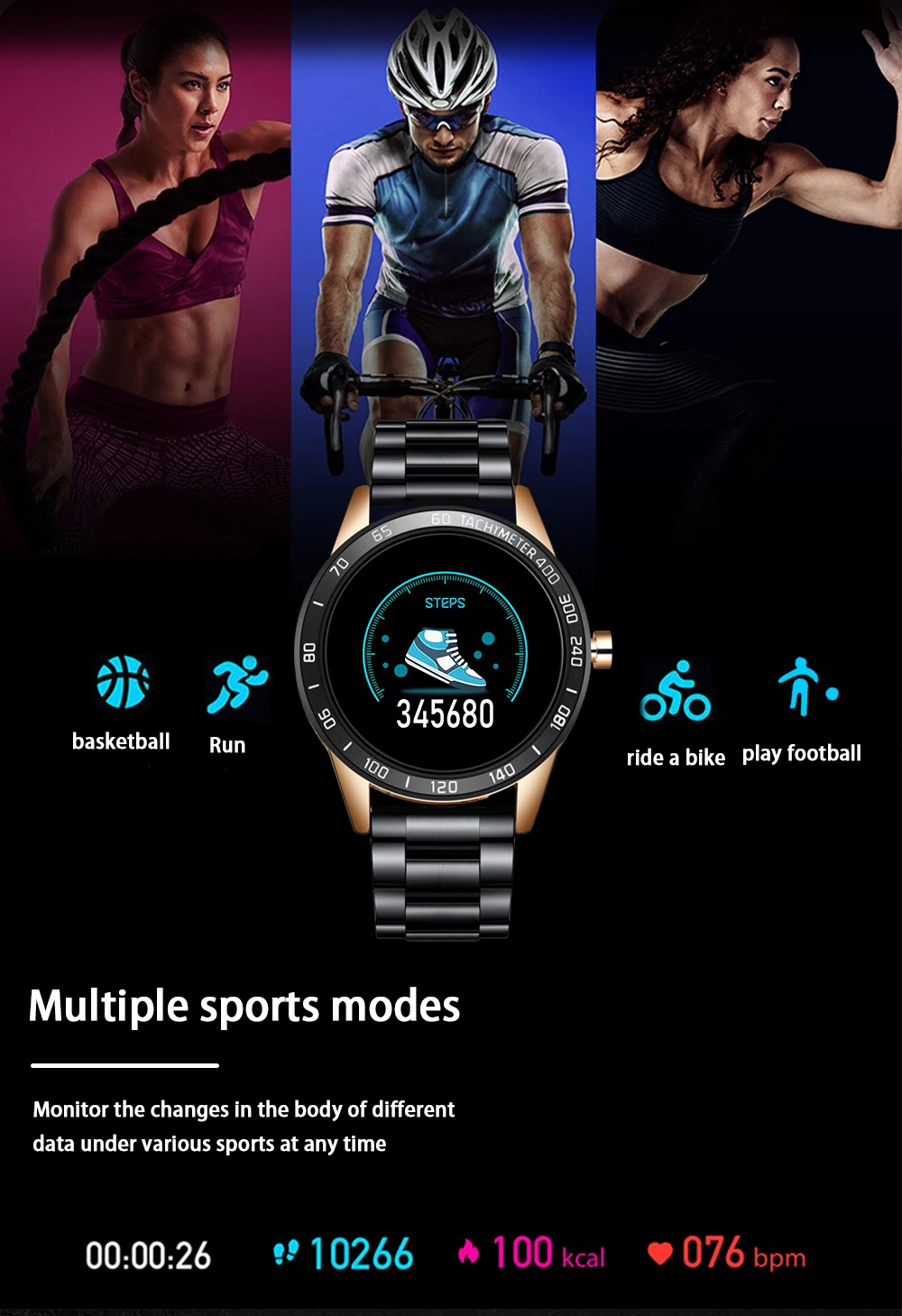 Смарт-часы мужские со стальным ремешком, водонепроницаемые, спортив...