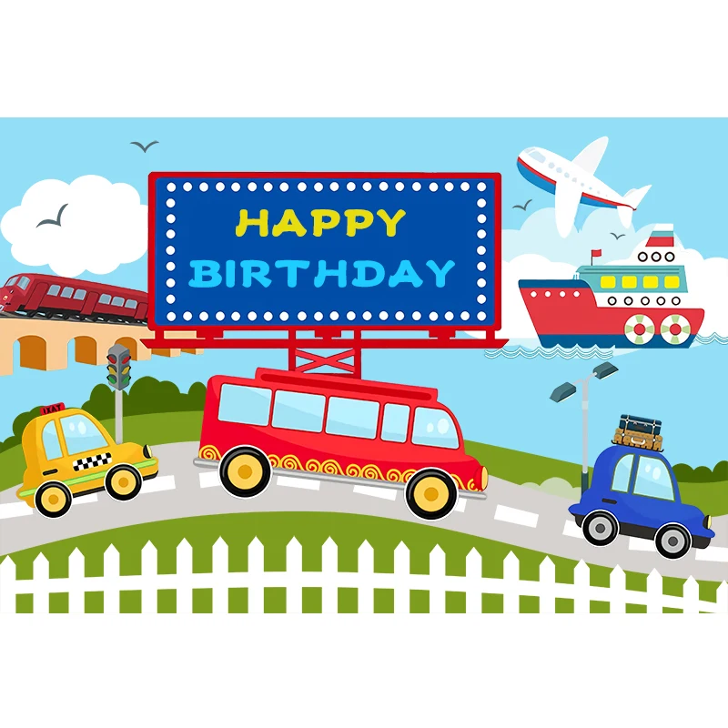 InMemory Мультфильм Поезд автомобили Мальчики День рождения Декорации для фотостудии голубое небо облака зеленая трава пользовательский фон