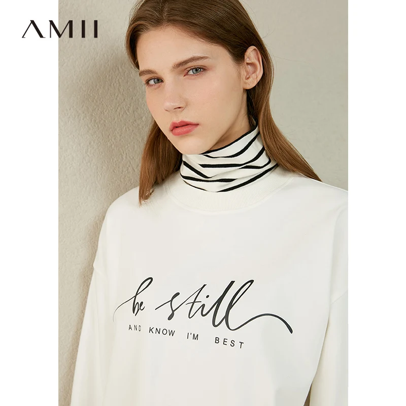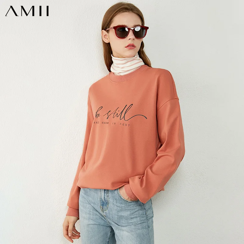 Amii минимализм, Осень-зима, корейский стиль, модная толстовка с капюшоном, Женская толстовка с буквенным принтом, женские топы, 12030252