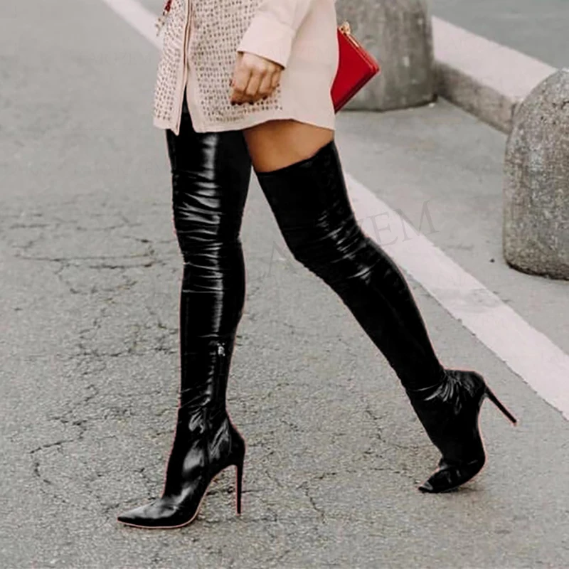 Женские высокие сапоги до бедра SEIIHEM из искусственной кожи, на м...