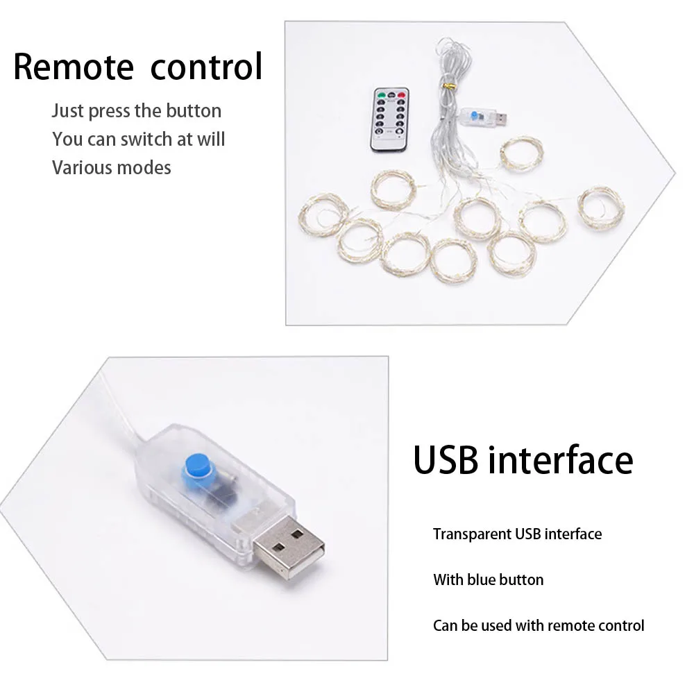 3 м светодиодный USB пульт дистанционного управления, занавески, сказочные огни, Рождественская гирлянда, светодиодный светильник, вечерние гирлянды для сада, дома, свадьбы, декора