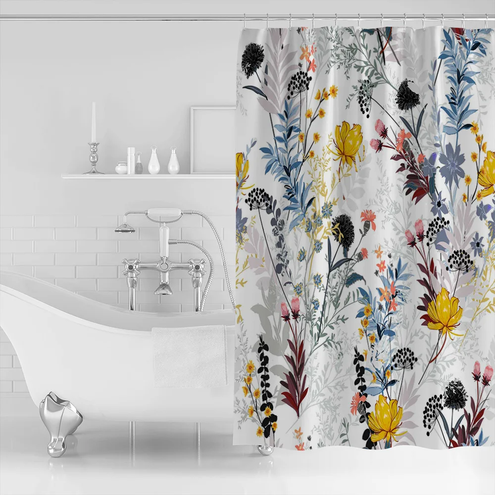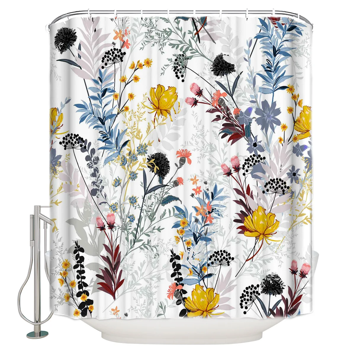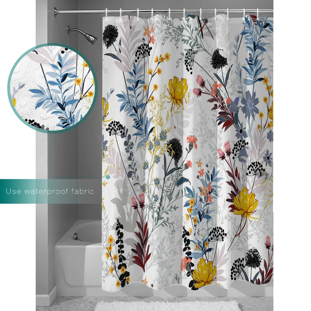 Занавеска для душа, водонепроницаемая, с цветами, листьями и крючком