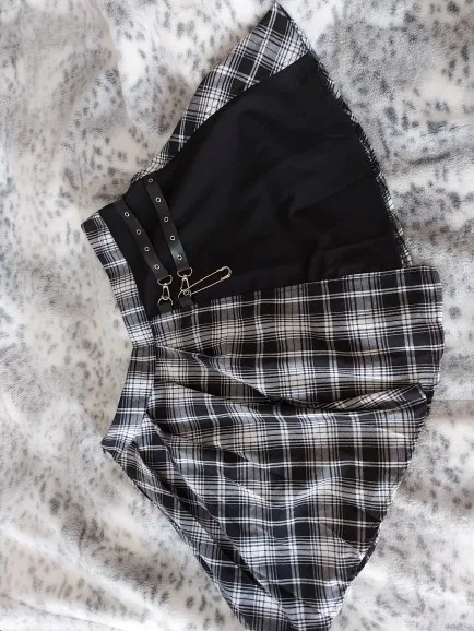 Уличная юбка в стиле Харадзюку, с пуговицами сбоку, Женская Сексуальная короткая мини-юбка, Готическая черно-белая юбка в клетку