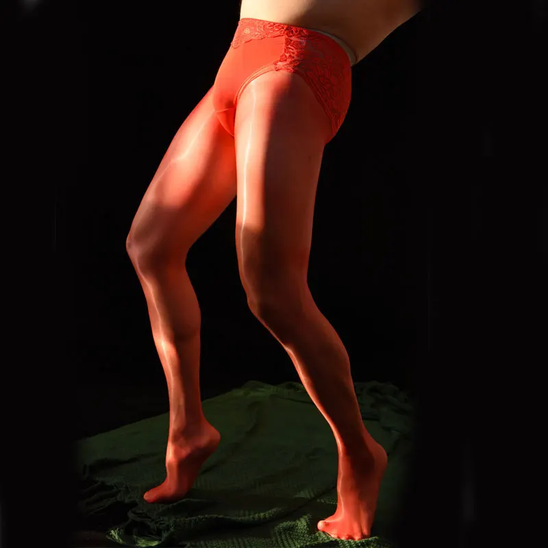 Пикантное мужское кружевное нижнее белье 2 в 1, чулки 1D, тонкие размера плюс U-образные чулки с выпуклым мешочком, блестящие сексуальные обтягивающие чулки карамельных цветов, 3XL F18