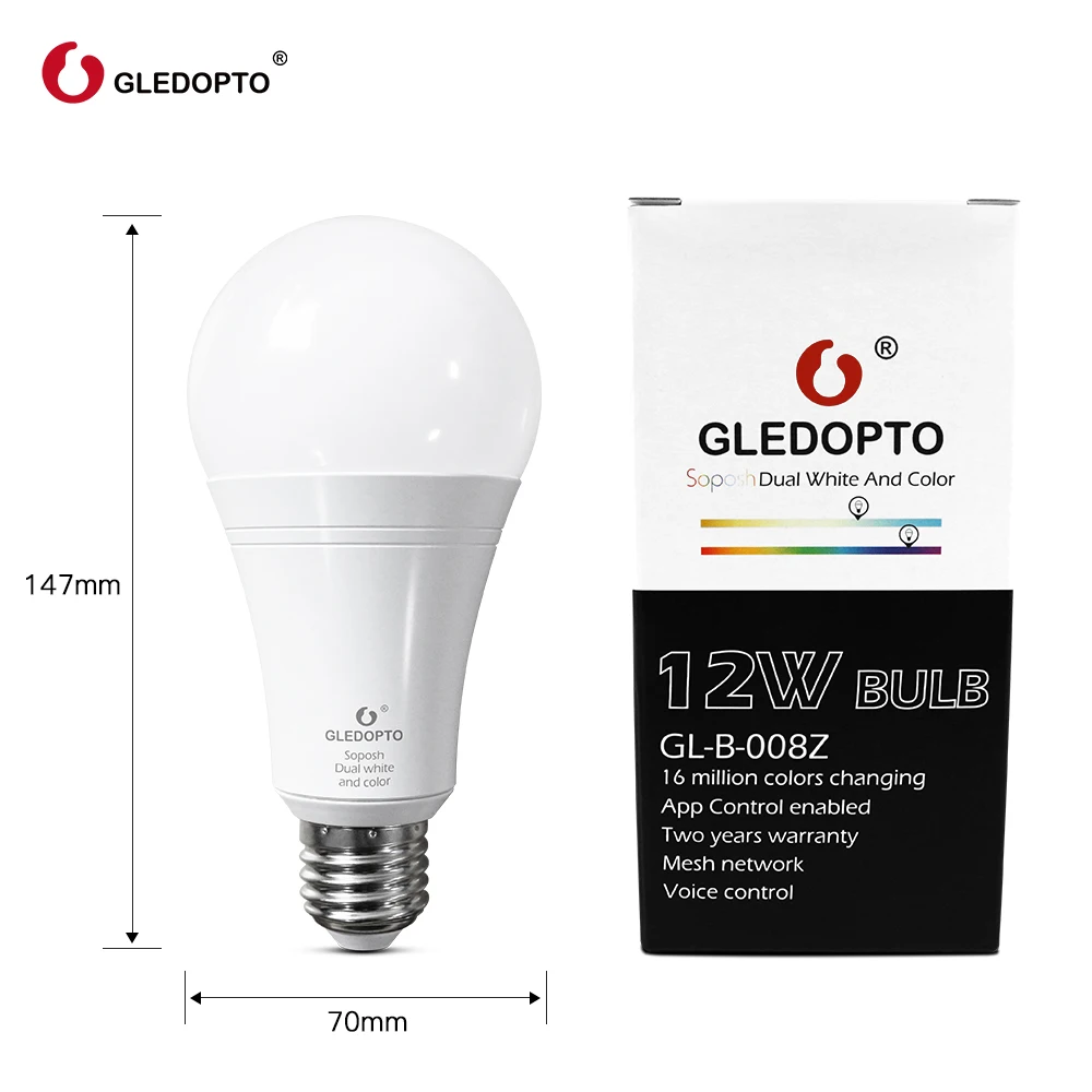 Диммируемая лампочка Gledopto Zigbee 3.0, 12 Вт E26 E27 Pro, регули...
