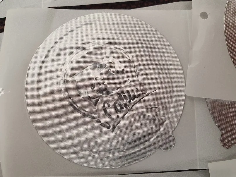 Для nespresso vertuo точные до мм, прибытие навалом до mazzetti 60 листов, удерживаемых вместе резиновой лентой. Не просвечивается. Быстрая доставка для Италии. Только без капсул многоразовая клейкая этикетка.
