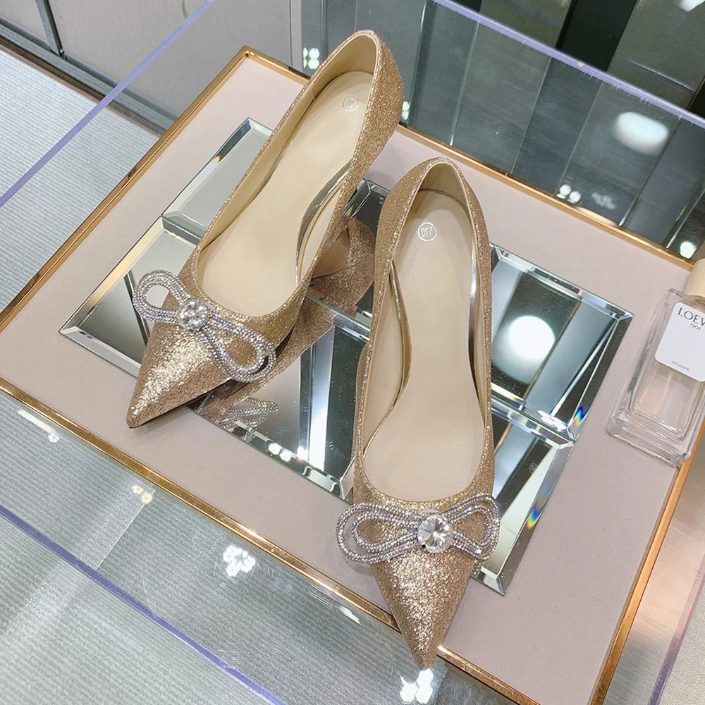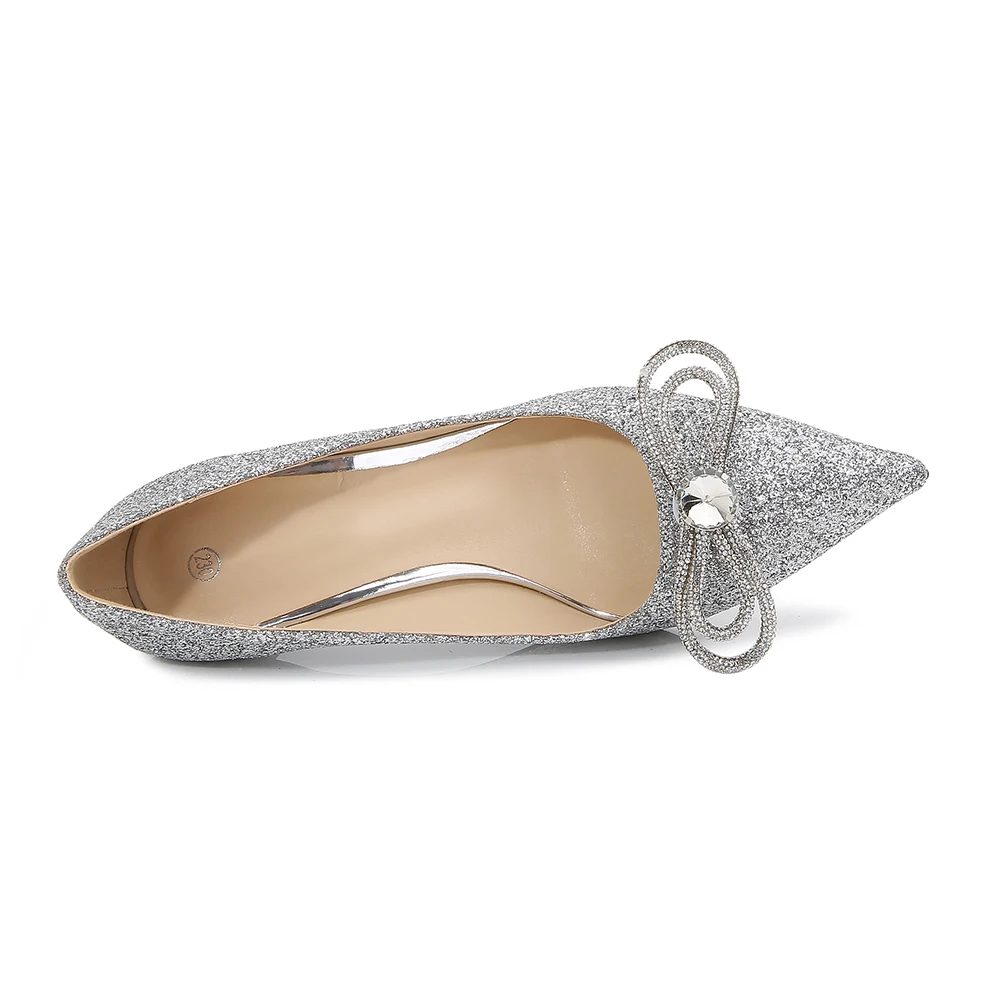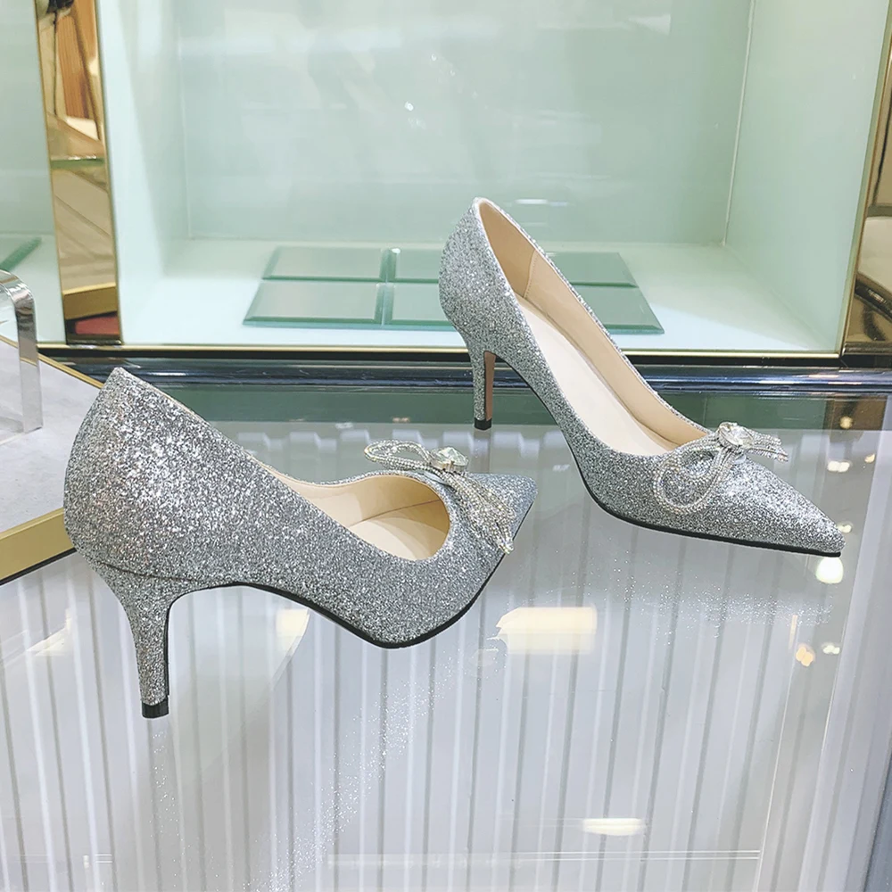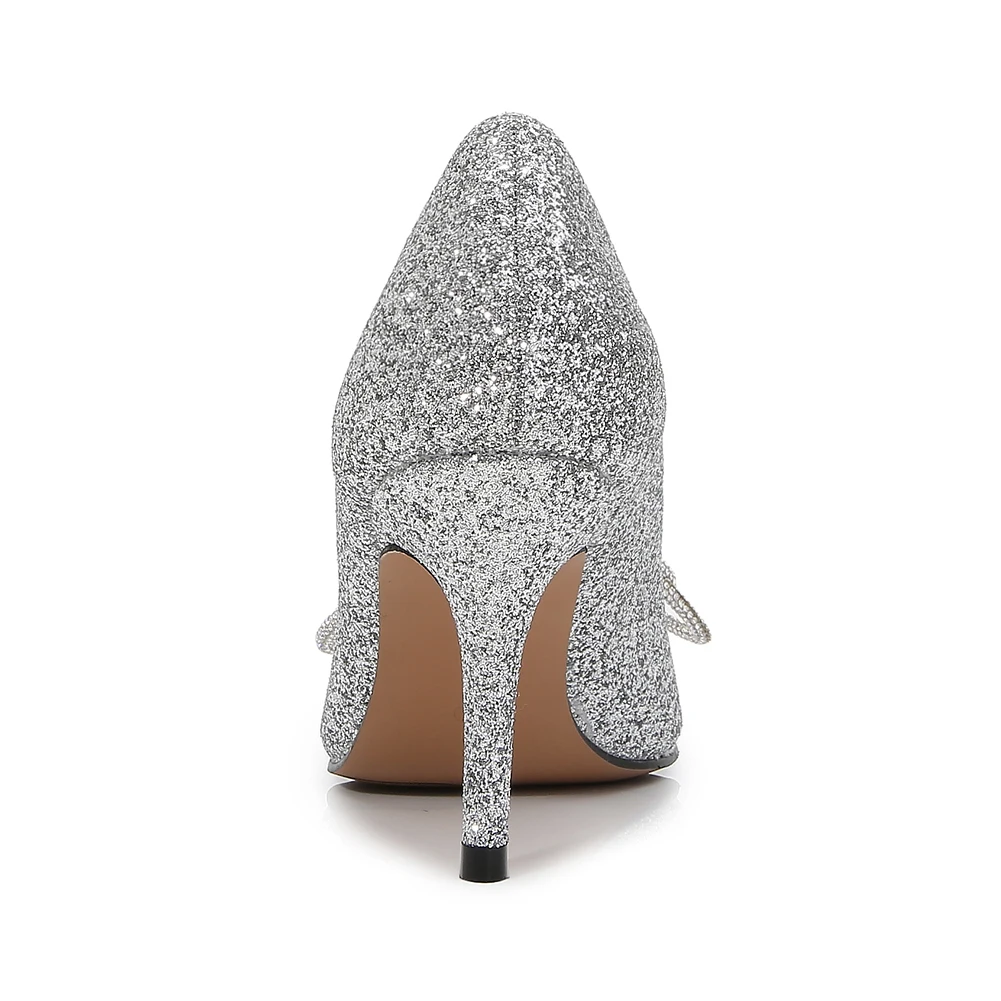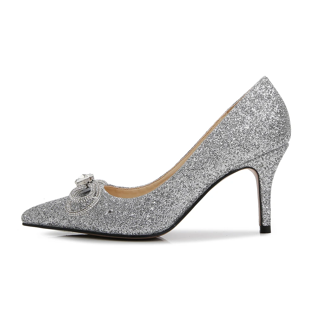 Элегантные женские туфли-лодочки на высоком каблуке 8 см с блестками, золотистыми и серебристыми блестками, модель для вечеринки, свадебное платье для невесты, дамские туфли размера плюс 46