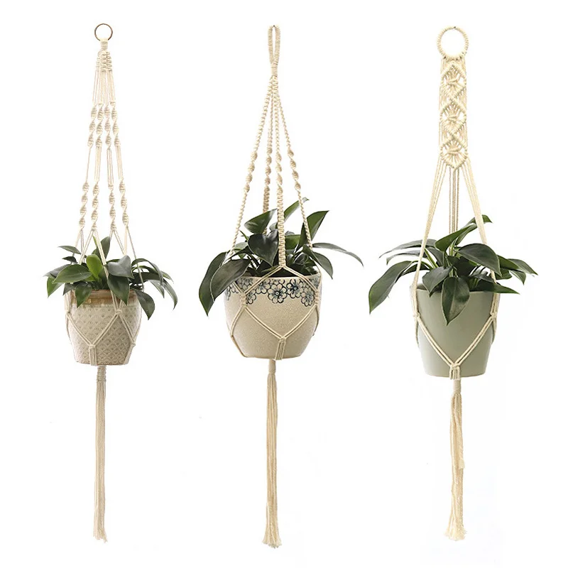 2021 хлопок, подвесные корзины ручной работы, макраме, настенная вешалка для растений, винтажная корзина, вешалки для растений, держатель для цветочного горшка, домашний декор