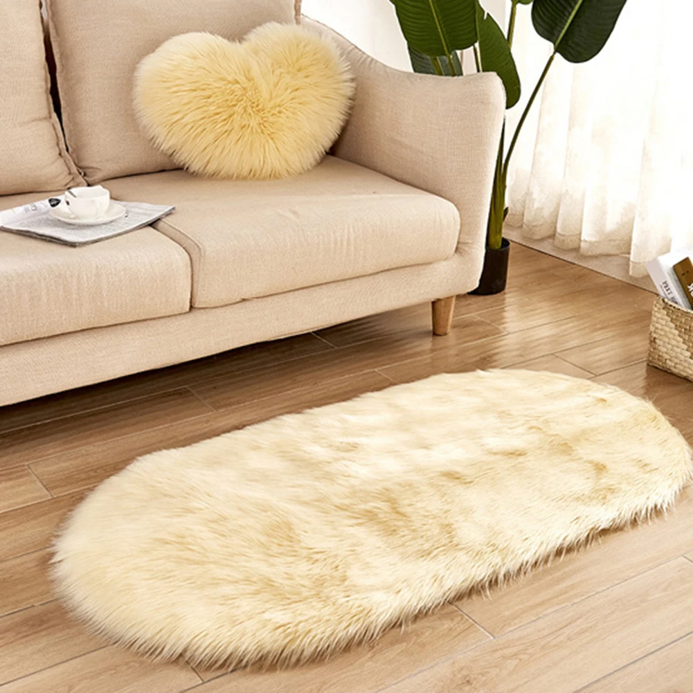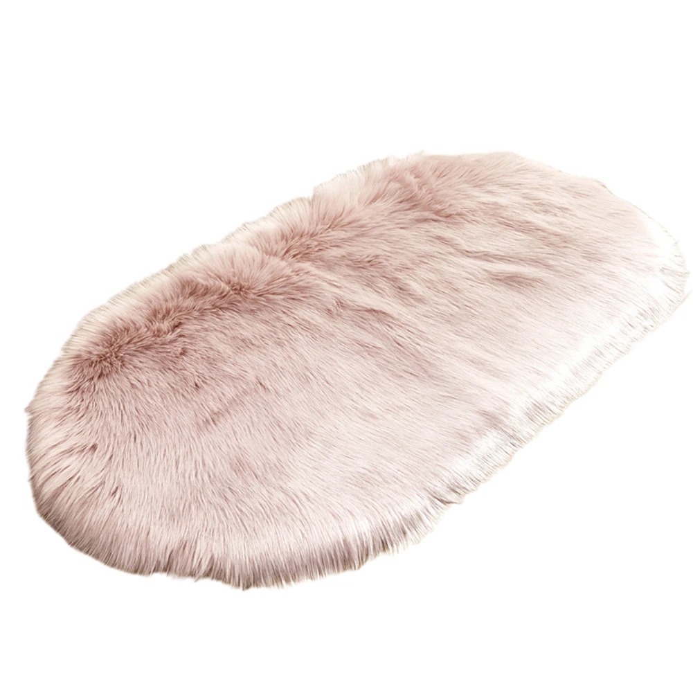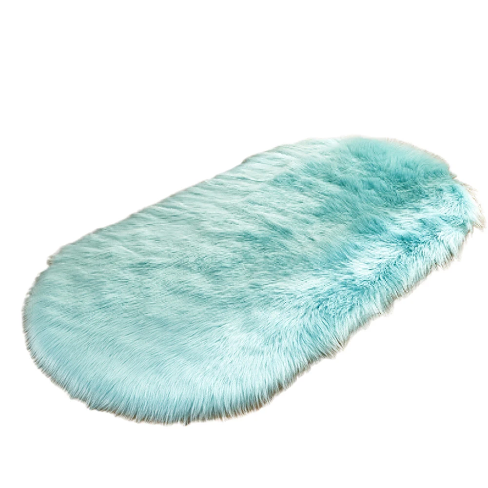 Мягкие Овальные плюшевые коврики из искусственной шерсти для дивана, однотонные ворсистые коврики для гостиной, теплый напольный коврик
