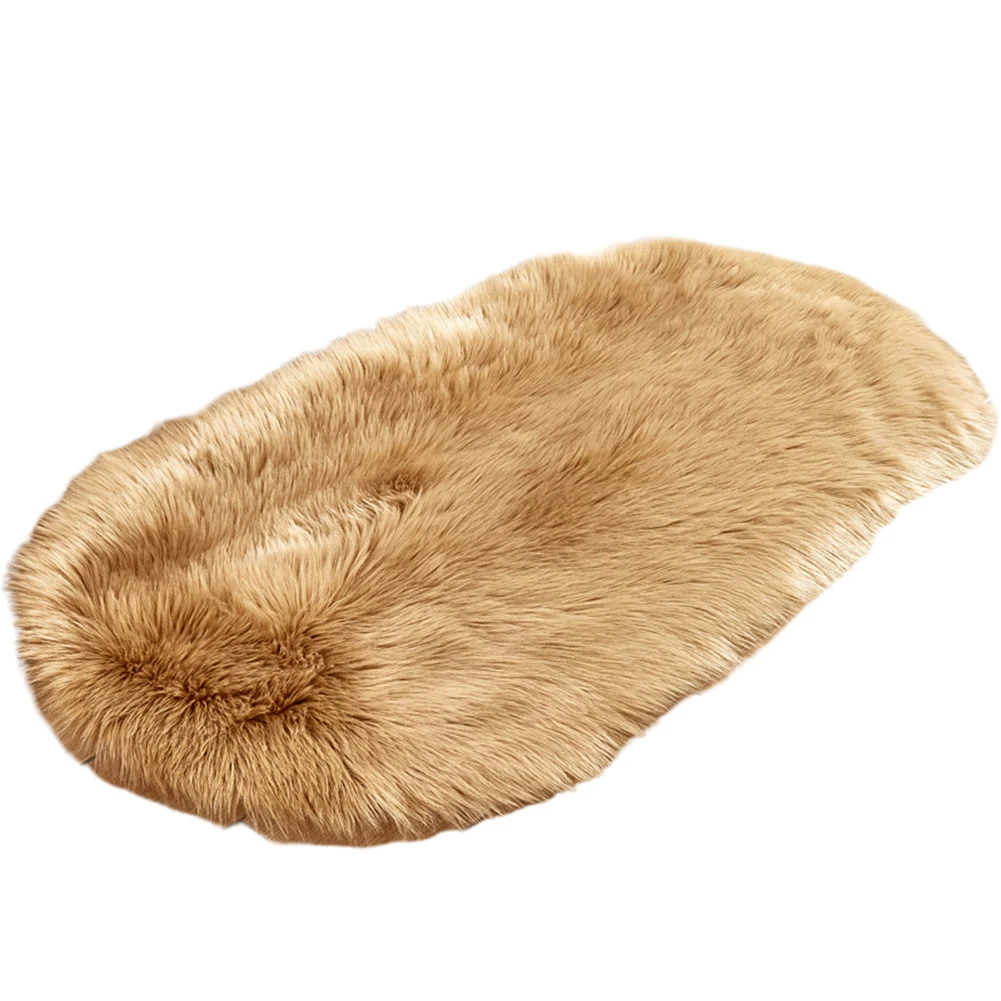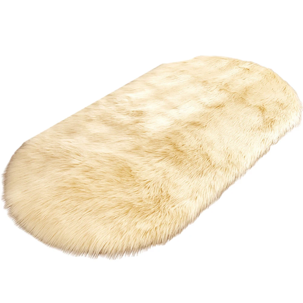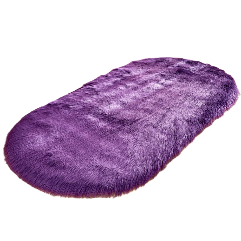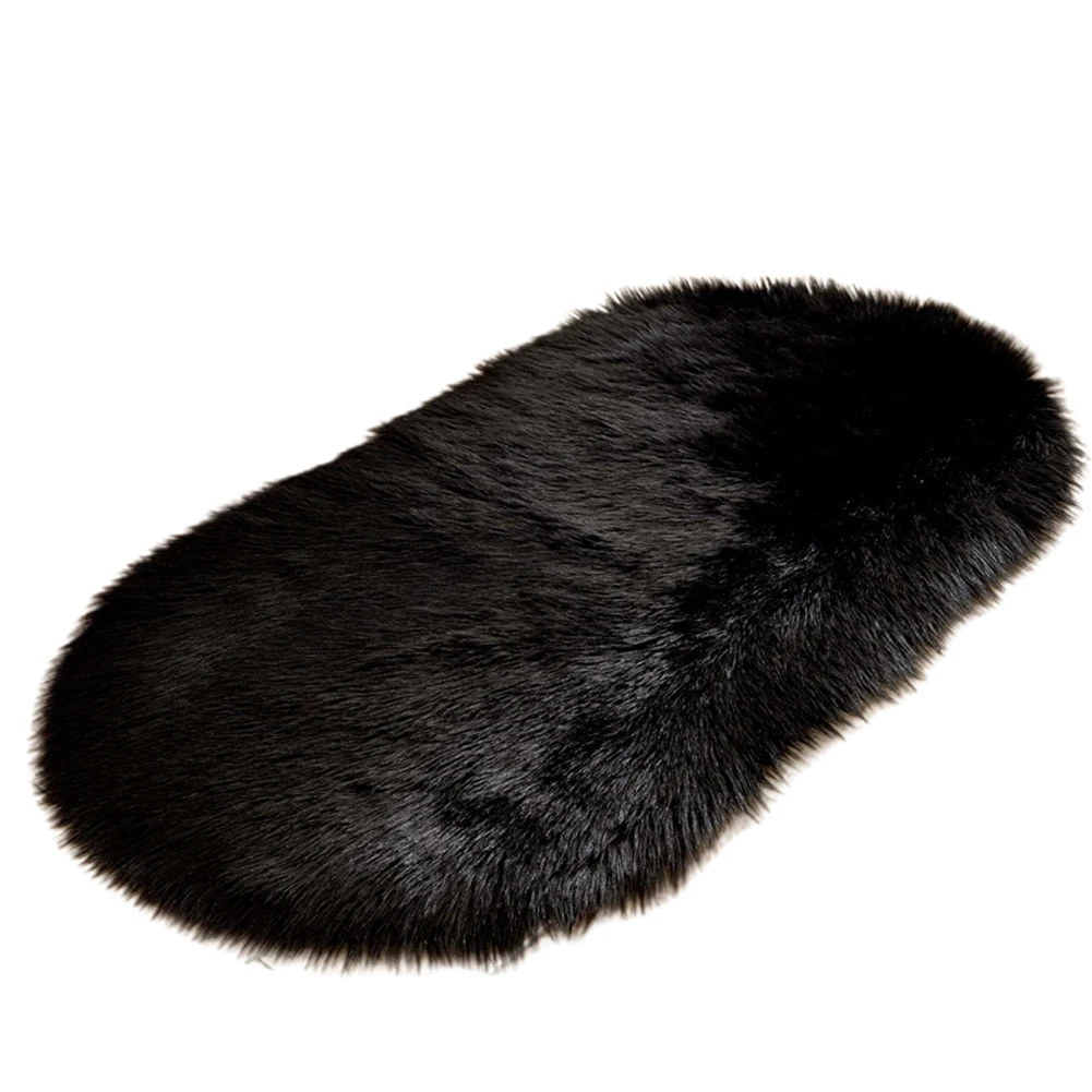 Мягкие Овальные плюшевые коврики из искусственной шерсти для дивана, однотонные ворсистые коврики для гостиной, теплый напольный коврик