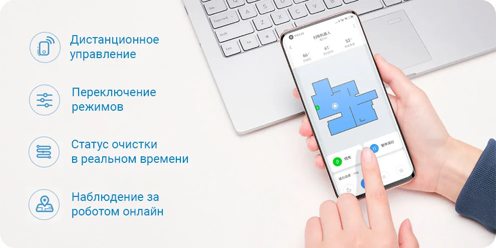 Влажная уборка полностью устраняет даже следы пыли и аллергенов, оставляя ощущение свежести. Робот-пылесос Xiaomi MIJIA Sweeping Robot G1 способен выполнять влажную уборку, совмещенную с работой автоматического пылесоса. Робот-пылесос G1 оснащен резервуаром для воды с электронным управлением. Он эффективно контролирует равномерный выпуск воды, чтобы защитить покрытия от повреждений вызванных излишним увлажнением. Объем резервуара 200 мл.Протирание пола выполняется в 3 режимах – с минимальным смачиванием поверхности – для ламината и чувствительных к воде покрытий, со средним увлажнением и с максимальным увлажнением – для прихожих, ванной комнаты, коридора.