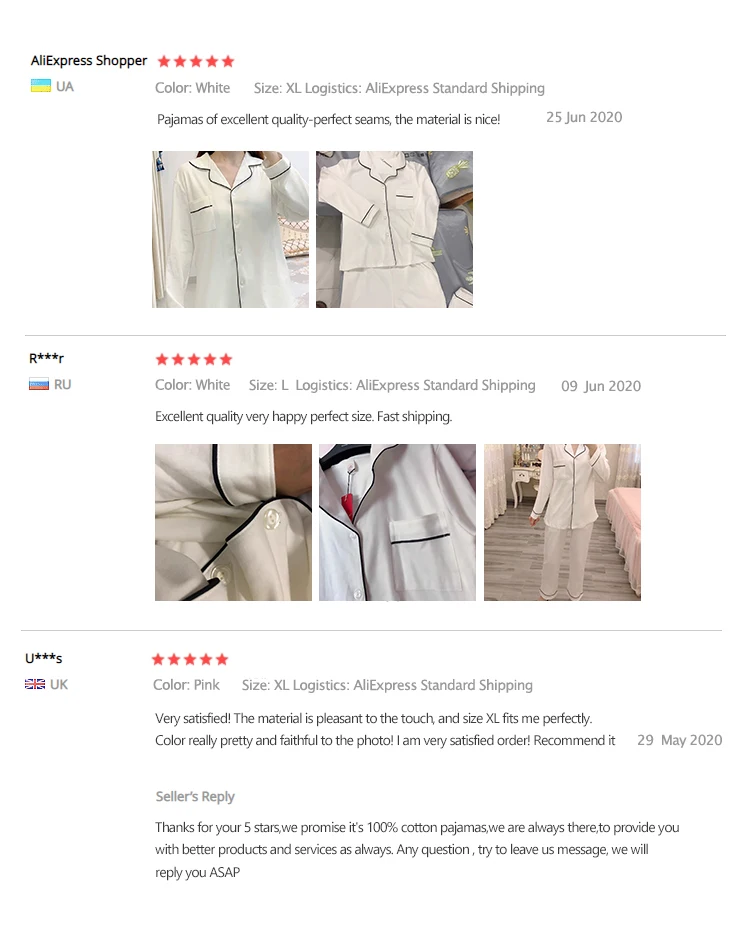 Товар очень хорошего качества. Пижама приятная к телу. Общение с продавцом было положительным. Размер был подобран по совету продавца и все оказалось на высоте. Мы вернемся в этот магазин за покупками еще раз. Спасибо продавцу!!!