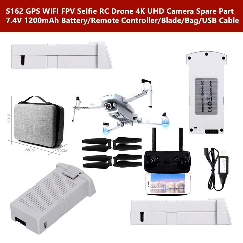 S162 GPS 4K селфи Радиоуправляемый Дрон 7,4 V 1200Mah аккумуляторпропеллерпульт дистанционного управленияПортативная сумкаUSB кабель запасные части для дрона S162 RC