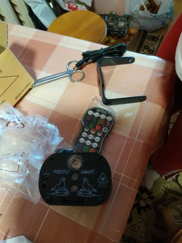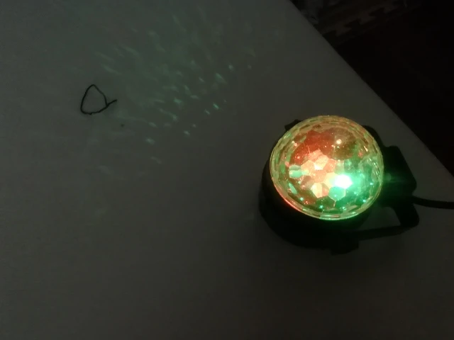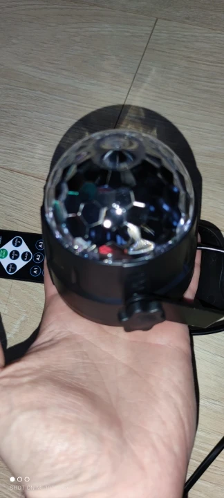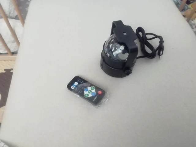 Упаковка была повреждена. Диско-Шар хороший, он работает так, как должен. Драйвер в порядке, и различные функции ответят немедленно. От скорости вращения, изменение размера света и цвета света. Музыка еще не протестирована. В управлении нет фонарика, его необходимо приобретать отдельно.