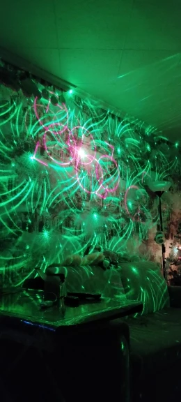 Очень классно, проектирует множество различных форм, сочетающих цвета. Очень забавный. Поставляется с контроллером и usb-кабелем. Для установки, но было бы лучше, если бы вы также носили Зарядное устройство USB.