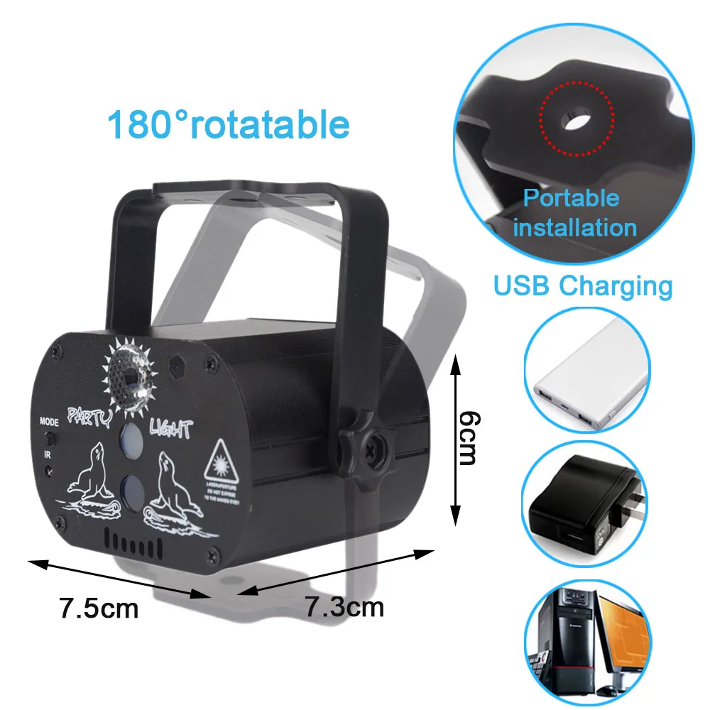 Миниатюрная RGB-дискотека, USB аккумуляторная красная, синяя, Зеленая лампа, светодиодный лазерный сценический проектор для диджея, лампа для свадьбы, дня рождения