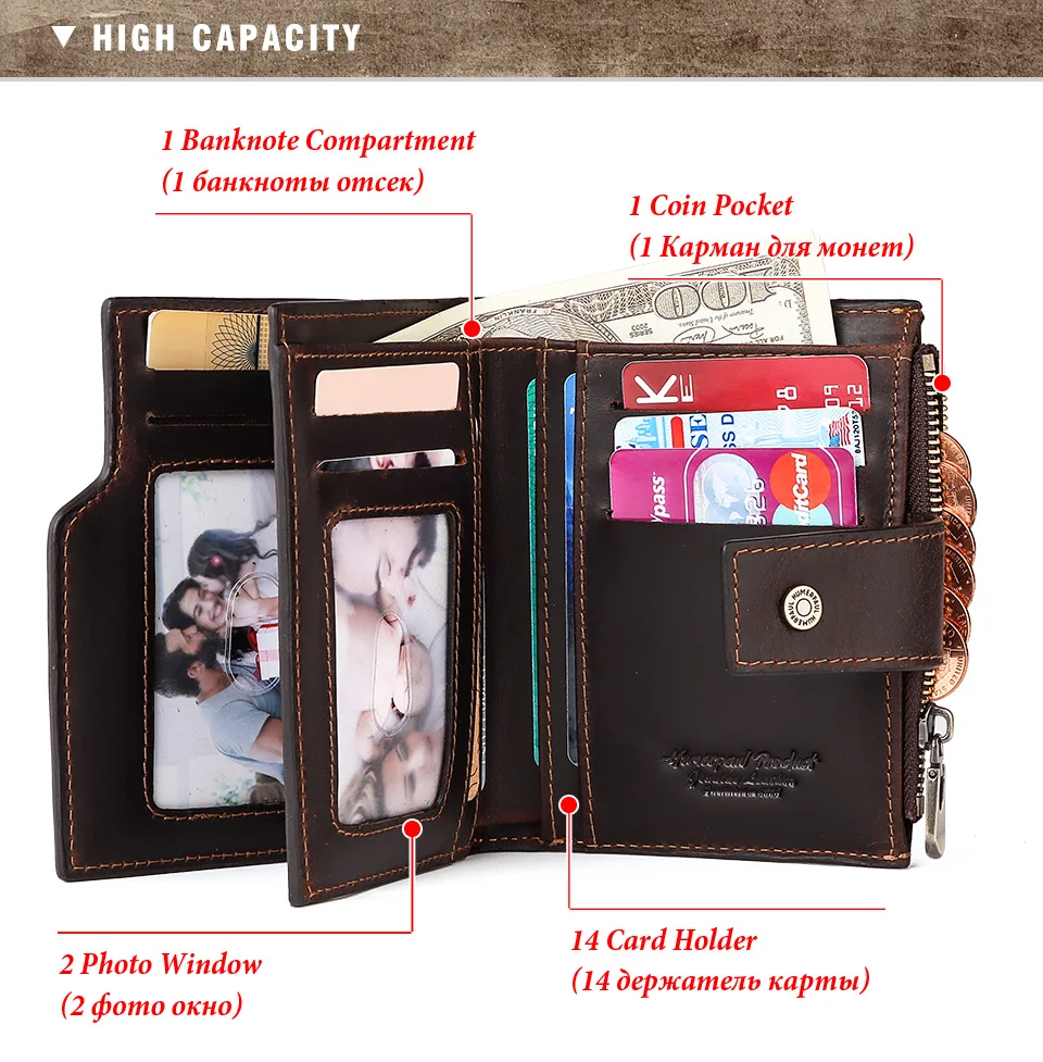 Бренд KAVIS, Натуральная Воловья кожа Crazy Horse, мужской кошелек,...